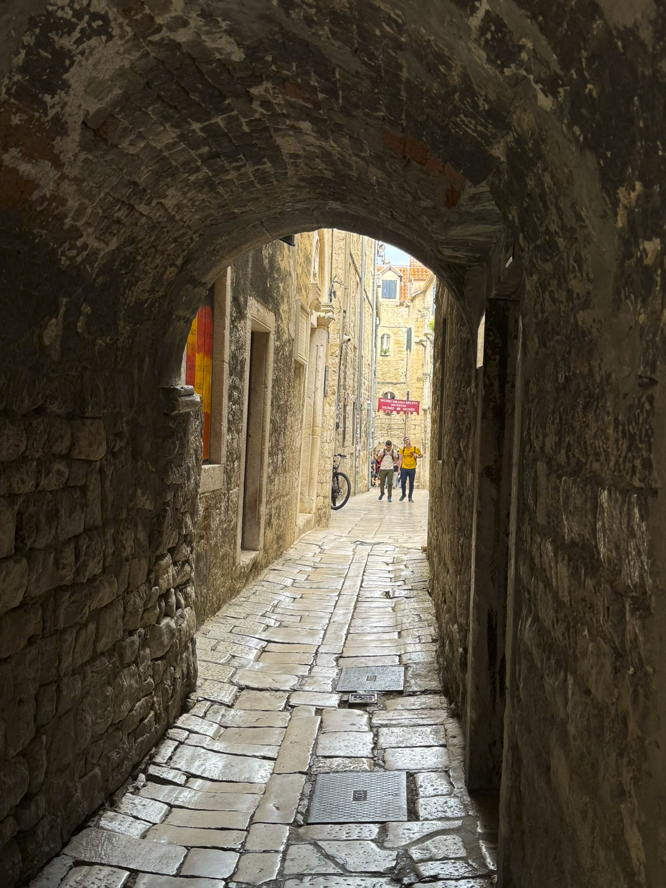 Consequently, it has kept its rich architectural history intact. This was evident as we rounded the first corner from our hotel and entered the ancient citadel under the narrow-arched Porte Saint-Jean gate. In its earlier years it was known as the Porte du Mené, the Door of the Executioner, because of its close proximity to the axeman’s place of work. Fittingly, his tower was only a short walk down the alley from the Cathédrale Saint-Pierre, for the priests to give prisoners their last rites.