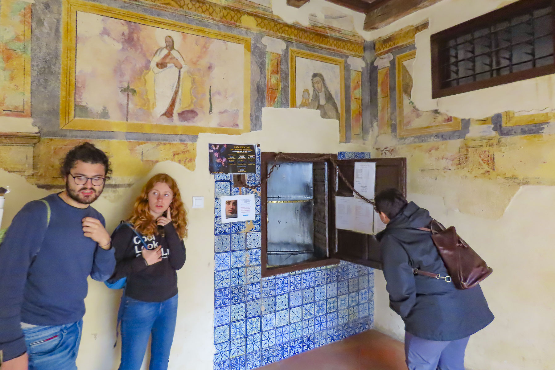 One afternoon as we walked back to the apartment from a late lunch, luckily I noticed a single black and white flyer tacked high on a tall double-wide door, while Donna had stopped way down the block to take a photo. Hundreds of years old, the door had a smaller single door built into which was open. I don’t recall seeing a placard on the wall identifying the building, but the flyer had a picture of a tray of cookies! By the time I turned around and got Donna’s attention the door had quietly been shut and locked to our disappointment. Finding it on a map we established that it was the Convento de Santa Inés. Allegedly they baked bolletos, little round cookie balls with sesame and honey-glazed pestiños – dough flavored with orange zest, aniseed, olive oil, and wine, then fried. Determined, we returned earlier several days later and stepped over the ancient threshold into a spartan courtyard with no sign of activity or arrows to follow. But in the far back corner under a small portico there was a plain wooden cabinet built into the wall surrounded by a fading spiritual fresco and Azulejo tiles. Taped to its door was the price sheet for the available, “Las Dulces.” The cabinet is called a torno and when you open the door there is a lazy Susan style turntable that allows the cloistered nuns to receive your payment and provide your cookies while remaining unseen. Over the centuries, convent tornos were also sadly used to anonymously drop-off unwanted infants in hopes the child would have a better life. Three decades ago, there were forty cloistered convents in Seville, today only a dozen remains, hosting an ever dwindling number of nuns. Not all of them bake “Las Dulces,” but knowing now we wish we had searched for the others that still do.
