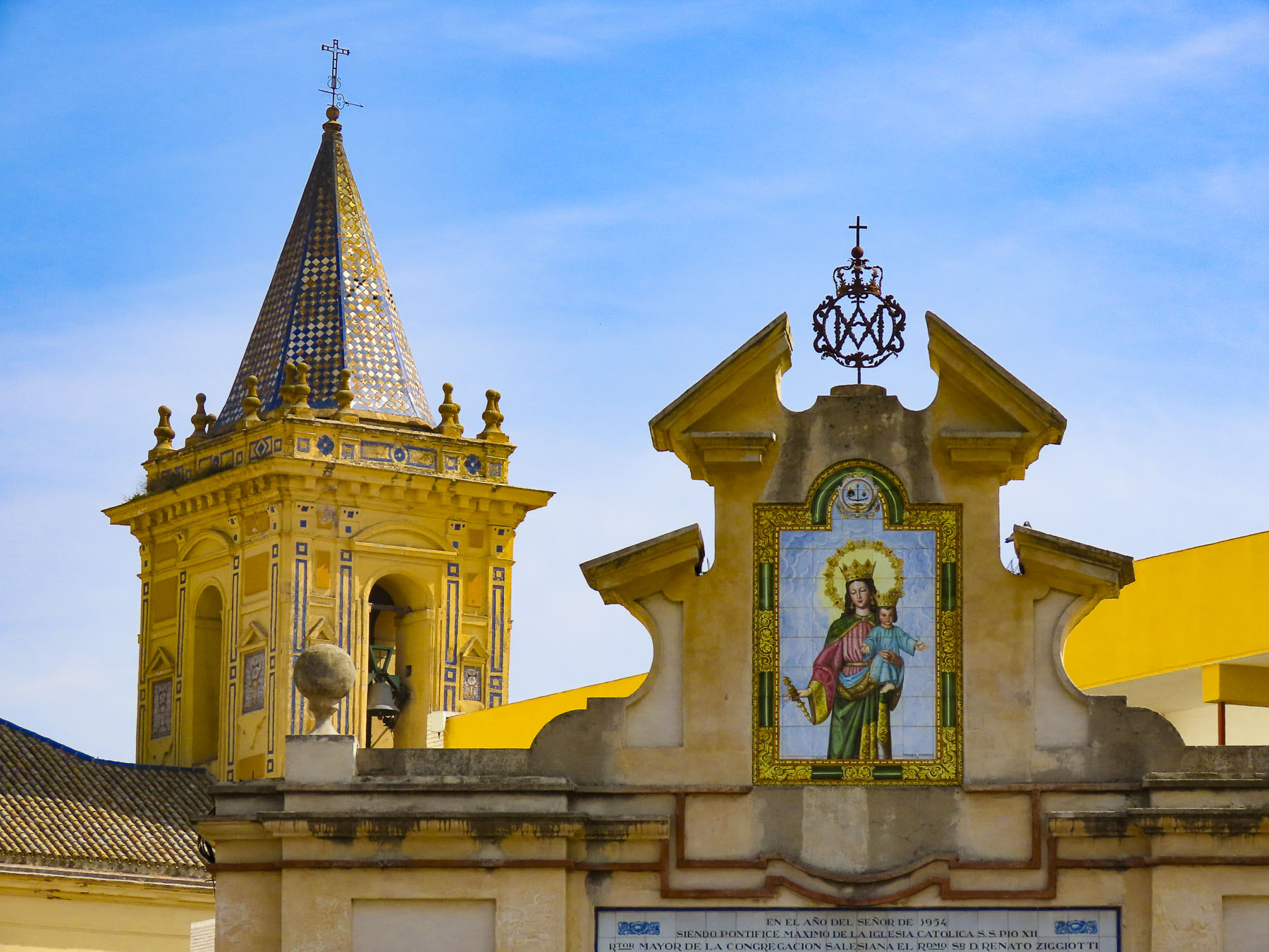 Heading back into the city through the arch we eventually came to the ornately figured baroque façade of Iglesia San Luis de los Franceses. This was a refreshing change from other baroque churches in Seville that hid their opulent interiors behind plain, almost barren exteriors that benefit from the phrase – “Don’t judge a church by its exterior.” This was clearly not the case with the Iglesia San Luis de los Franceses; it broadcast “notice me!” as if the exquisite stone figures were the 18th century mason’s version of a neon sign. The church was built at the beginning of the 1700s for the Jesuits to use as a novitiate, but they were only able to use this elegant building for thirty years before the order was expelled from Spain and the rest of the Spanish empire. Later it was used as a Franciscan seminary and convent, then factory, theatre, hospital for venerated priests and hospice. Eventually it was deconsecrated before being shuttered for many decades. After a ten-year renovation sponsored by the Provincial Council of Seville the still deconsecrated church is now a museum and local government office. Its four gilded baroque altars with their sixteen spiraling, solomonic columns that support the dome above are spectacular and in our opinion it’s one of the finest church interiors in the city.
