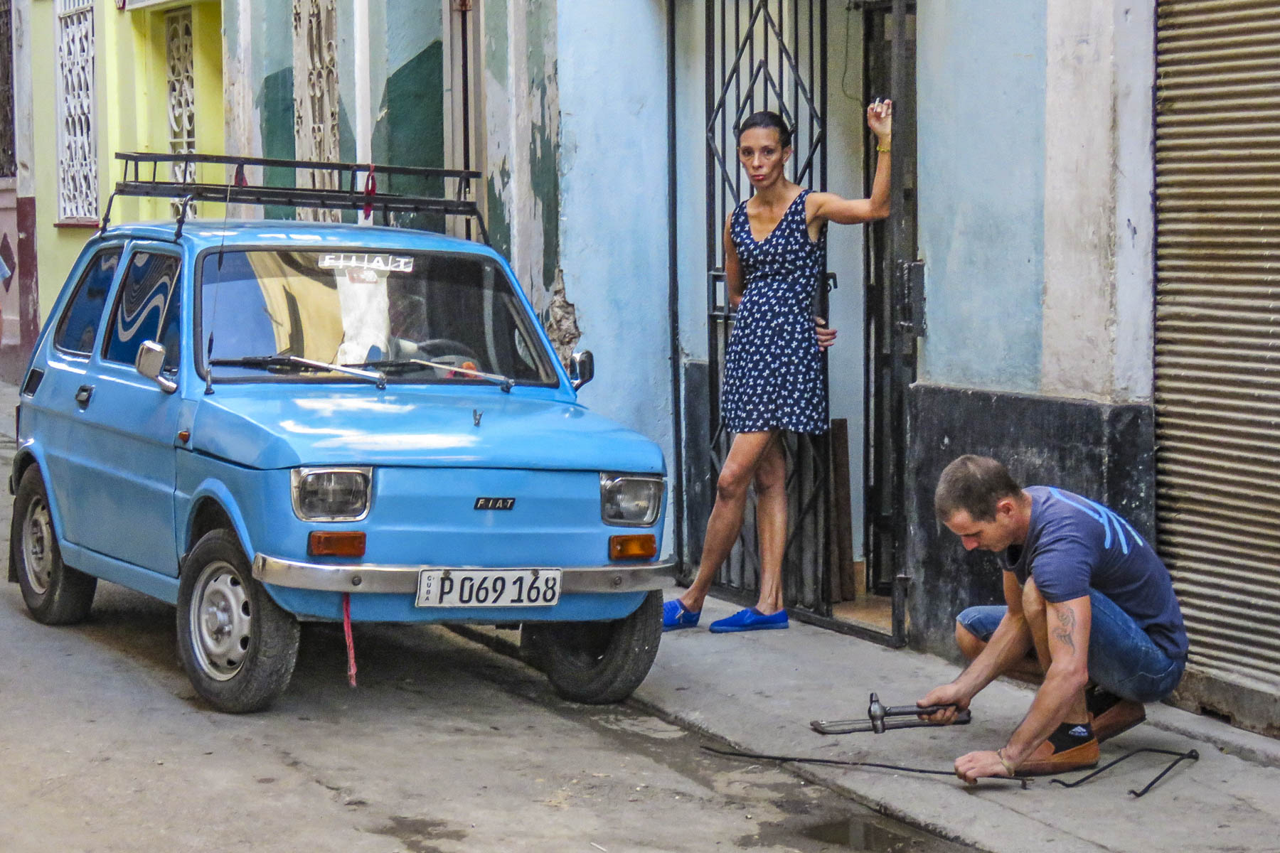 Down the side streets of the city, it wasn’t unusual to see these vintage cars raised on cinderblocks, their hoods open as amateur mechanics tinkered away to keep their classic beauties running. There are about 60,000 old American cars still on the road in Cuba. Most date from the 1950s, but there are still Packards, Cadillacs, Dodges, Chevys, Studebakers and Fords from the 1940s and 30s that are still road worthy. This is an amazing testament to the talent of Cuban mechanics that have been “MacGyvering” the repairs with makeshift parts since the revolution ended in 1959, when the U.S. trade embargo began and Cuba banned the import of American products. While some cars look to be in mint condition, often the interiors are taped together, door handles are missing, and the windows don’t roll up. Engines don’t last forever and it’s not uncommon to swap engines between the American makes and models. Sometimes even the motors from Russian Volgas and Ladas work their way under the hood of Fords and Chevys. Fiats and Peugeots were imported after the revolution but proved to be not as durable as the American models.