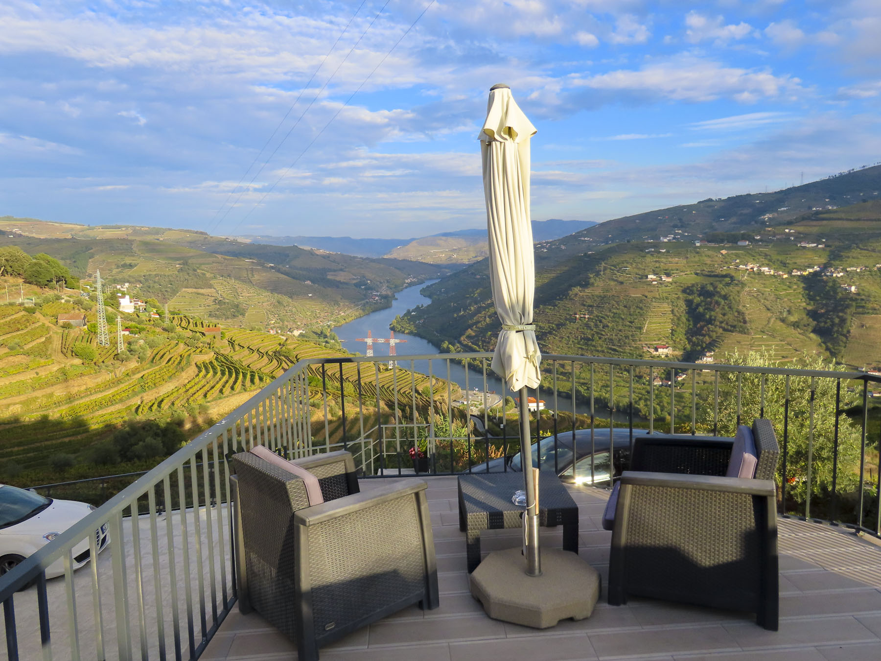 The gate to Casa Vale do Douro slowly swung open to reveal a steep long driveway, which abruptly ended atop the edge of a high retaining wall. It could have been used by Portugal’s Ski Jumping team for practice, if they had one. The view was glorious. Maneul, the charming owner, helped us with the bags to our room. Within minutes we were ensconced in chairs on our balcony. Savoring our glasses of wine and the view. One of the things we appreciate about vacationing in Portugal, during the shoulder seasons, is that it’s still possible to find marvelous accommodations for under €100 a night, that include breakfast. We’d be calling Casa Vale do Douro home for the next three nights.