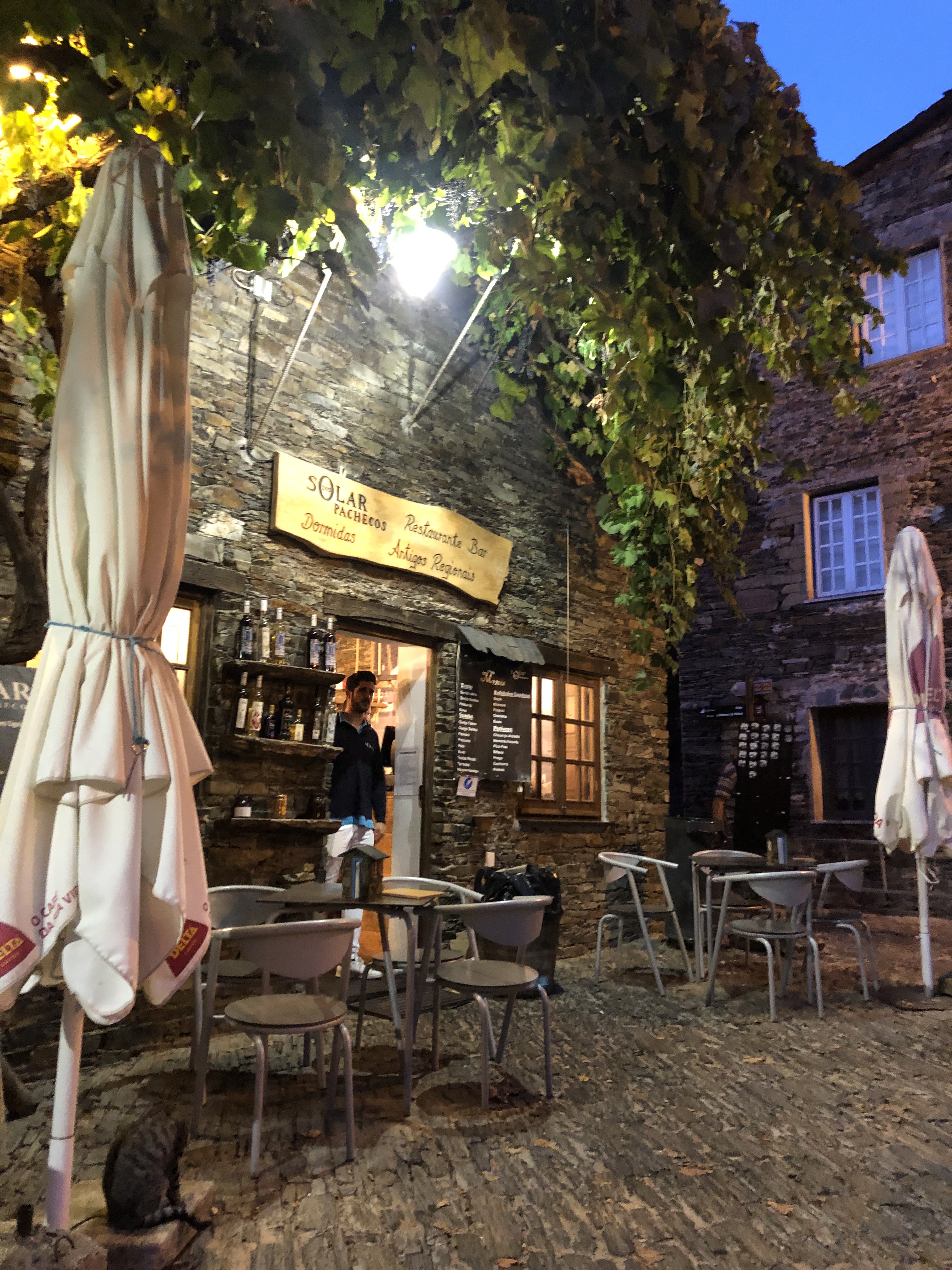 Highly recommended by our host we dined each evening in Mesão Frio alternately at Tasca do Zéquinha an intimate rustic eatery with a silhouette of a wine cask hanging above the front door. Inside was a small bar packed with regulars. With a smile one pointed us upstairs when he saw our dismay that it was standing room only on the street level. Upstairs we were pleasantly greeted in a small dining room of eight tables. We enjoyed lamb chops, a rare and outrageously expensive menu item in the states, but well priced here and delicious. Fully sated, we were pleasantly pleased with how inexpensive appetizers, a house wine, dinner, dessert, and coffee were. In the Douro Valley the wine choices are infinite, or fathomless and as much as we enjoy wine, we are not knowledgeable oenophiles and are content with most restaurant’s house wines. Which in our experiences have found to be very good.
