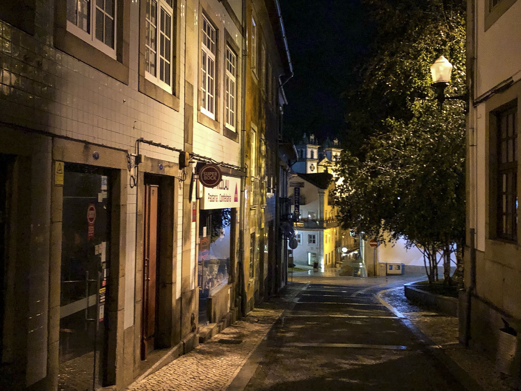 Fortunately, the door was quickly opened at A Burguesa Guesthouse and a friendly voice welcomed us with “Please come in, let me take your bags,” as we were ushered inside out of the rain. We know we’re getting older when the young receptionist at the guesthouse whisked our bags up the stairs two steps at a time. “Maybe I should start dying my grey?” “You might need to shave a few years off while you’re at it,” Donna replied jokingly with a smile. A few moments later the hostess returned with an umbrella and directions for parking our car which was blocking the narrow, deserted lane in front of the guesthouse.