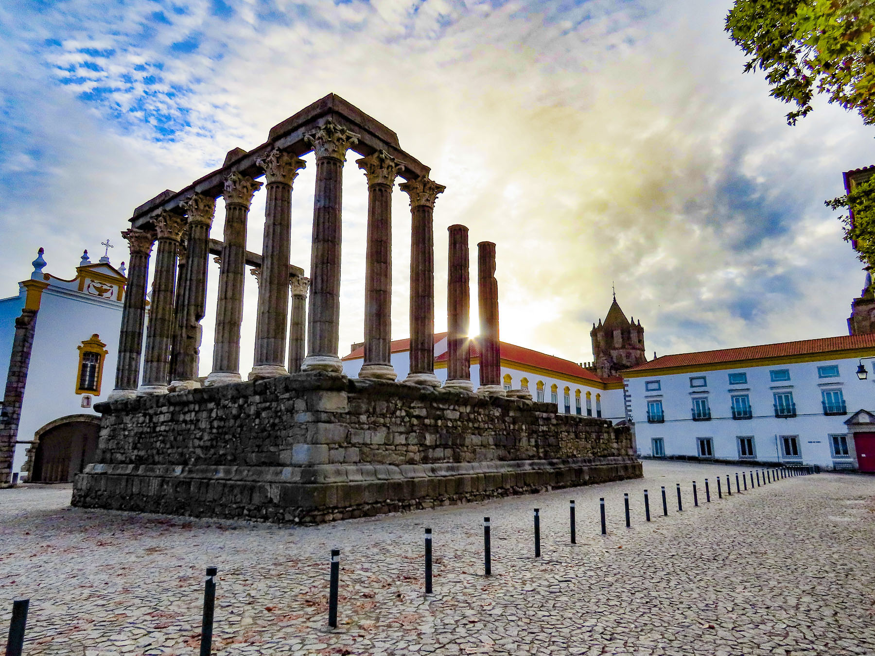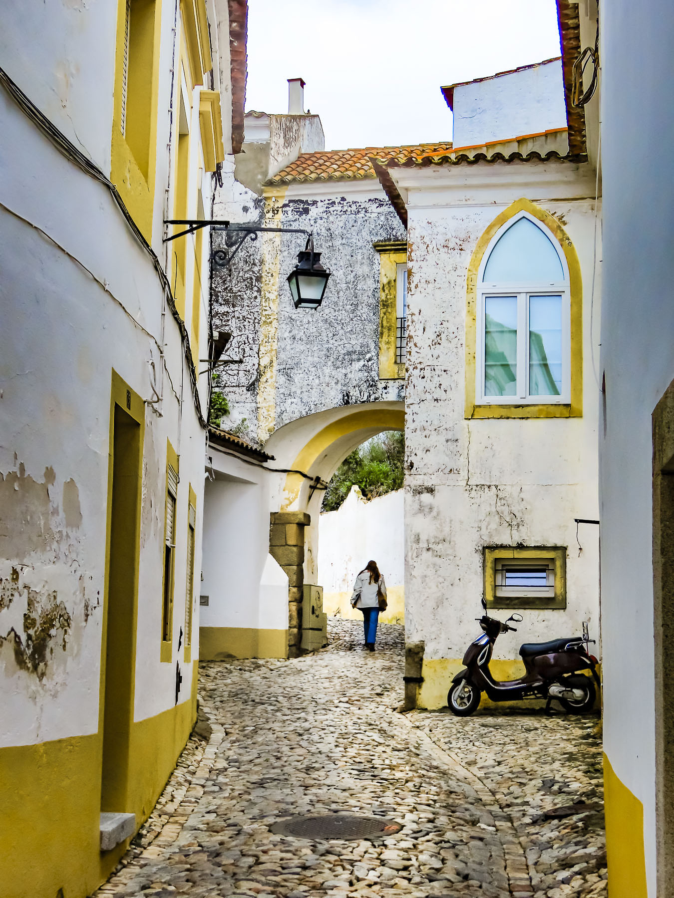 The next morning a favorable weather report promising sun encouraged us as we continued south to Evora. Only a few miles out from Castelo Vide we detoured for a quick stop at the Ponte Romana da Portagem. A modest four-arched stone bridge, built in the 1400s over an earlier Roman crossing, its tranquil location spanning the Sever River obscures a turbulent past. It was here that King John II of Portugal built a tower with a tollgate in front of the bridge to collect a tax from the Jewish people expelled from Spain. A small refugee camp grew along the riverbank for those who couldn’t afford the tax. It’s believed 15,000 Jewish refugees eventually crossed the bridge.