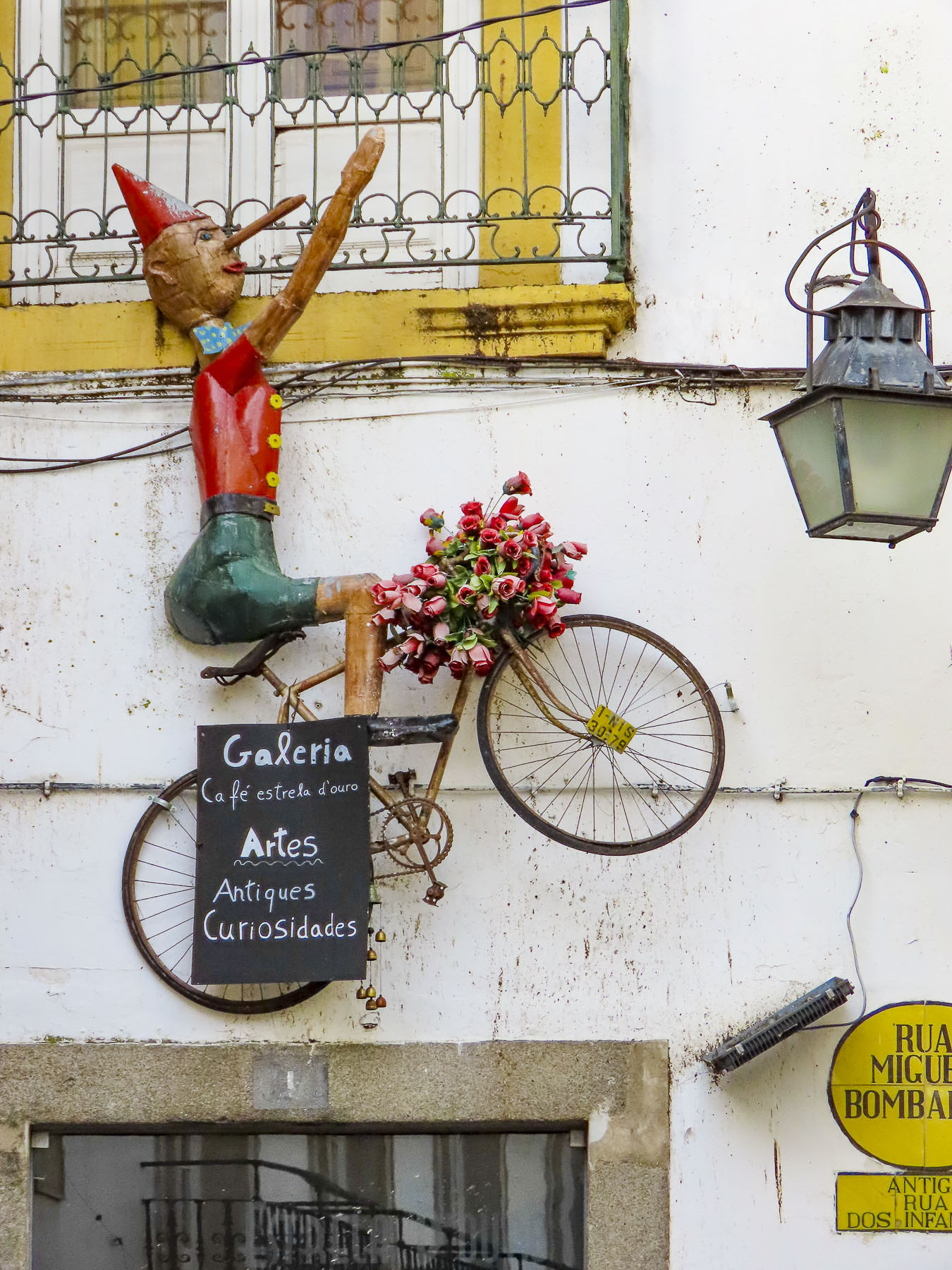 The high arches of an ancient aqueduct, the Aqueduto da Água de Prata, spanned our route into Evora. This was a critical infrastructure project in the 1500s when King John III ordered it built to relieve the near constant drought conditions of the city that was quickly becoming a center of commerce and education in the Alentejo region, with the establishment of the Colégio del Espiritú Santo, University of Evora, in 1557. Of Lisbon’s Tower of Belém fame, military architect Francisco de Arruda was chosen to design the aqueduct. The mammoth project stretched a formidable 11 miles from the Divor River through a series of tunnels and over elevated arches, some 85 feet tall, spanning valleys and plains, before bubbling forth in the public fountains across Evora. Seems “location, location, location,” has been a housing mantra for centuries and as available land within the walled city disappeared, homes and stores were built under the aqueduct’s arches.
