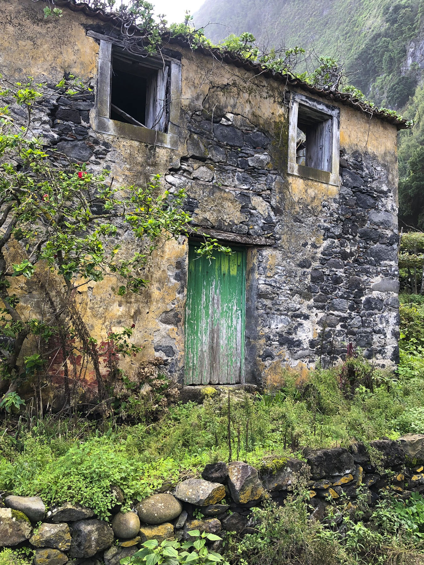 Later that afternoon we drove down a well-worn track that followed the shallow Ribeira de São Jorge through a rugged narrow gorge. The road ended just before a footbridge that led to a freshwater lagoon, created by the river’s rushing water, just shy of the ocean. Above the lagoon was a restaurant with outside tables around a pool that had nice views of the surrounding hills and the sea.