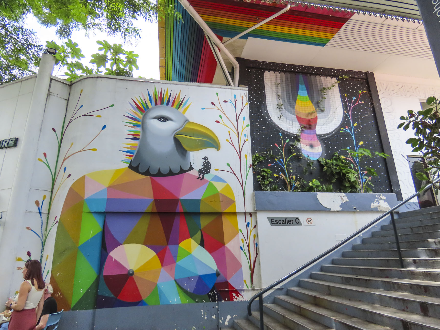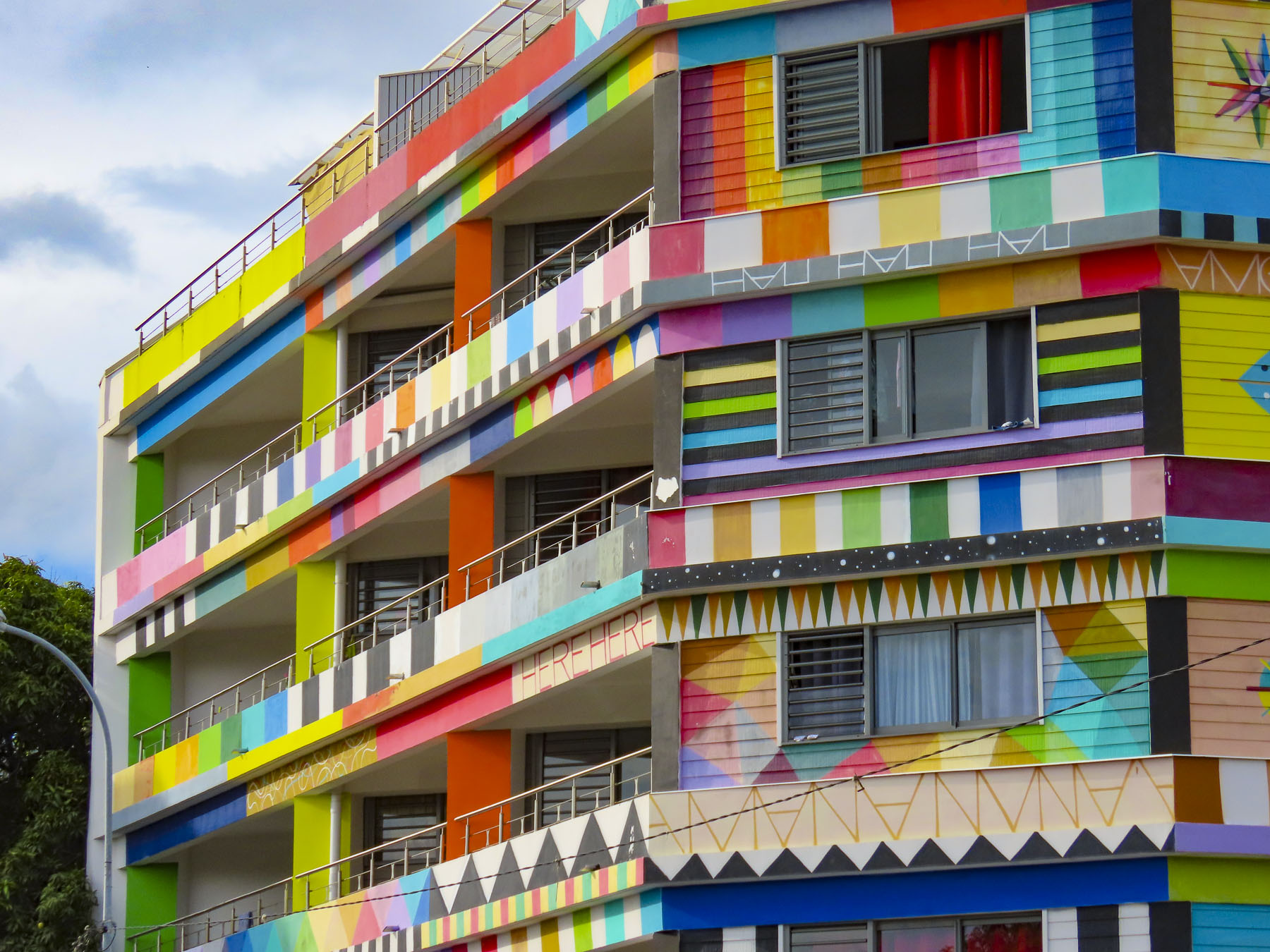 Closer to our temporary home, the Résidence Paraita, an apartment building, was totally immersed in an abstract design by the Spanish street artist Okuda, which we could see from the balcony of our apartment.