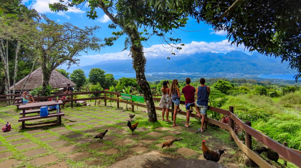 We reached Taravao late in the afternoon, at the time when most restaurants are closed until dinner. We opted to eat at the local McDonalds, something we rarely do, especially when traveling abroad. But we were pleasantly surprised with tasty McWraps, and the coffee was good. But one of the memorable things about this stop was the appearance of a young father and his daughter dressed in matching pinks tutus, enjoying each other’s company and lunch together. It’s not something every dad would do, and I would have loved to know the backstory, but I admired him for his self-confidence, and that he didn’t perceive this playfulness as eroding his masculinity, just a desire to please his little girl. Something I can relate to.