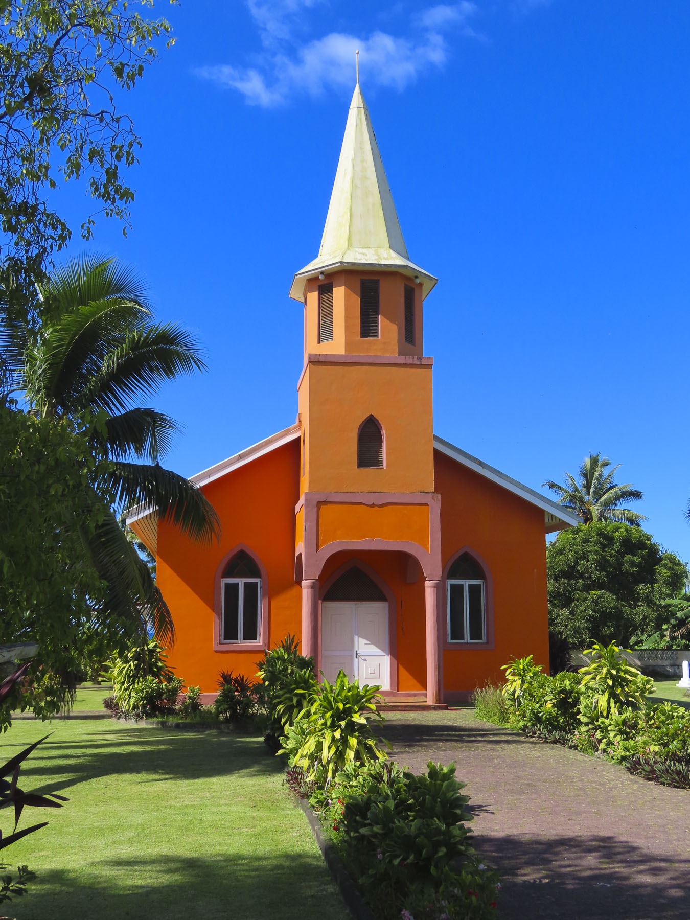Outside Papeete the traffic eases tremendously and we took several short day-trips out into the surrounding area, traveling along the north coast to the Pointe Vénus lighthouse in Māhina. Built in 1867, on a black sand peninsular that juts into Matavai Bay, it was the first lighthouse built in the South Pacific and equipped with a powerful beam that could be seen by ships 215 miles out to sea. It takes its name from an event on Captain James Cook’s first voyage around the world, when on June 3rd, 1769, Cook and his accompanying astronomer Charles Green set up equipment to observe the transit of Venus, a small black dot, travelling across the Sun. From the shore here looking north the blues of the sea gradated seamlessly into the sky, a vast endless emptiness that Polynesians explored and found Hawaii, 2600 miles away, 1200 years ago. The brightly painted Église Getesemane de Mahina along the road to the lighthouse was definitely a worthy photo stop that epitomized the Tahitian celebration of color.