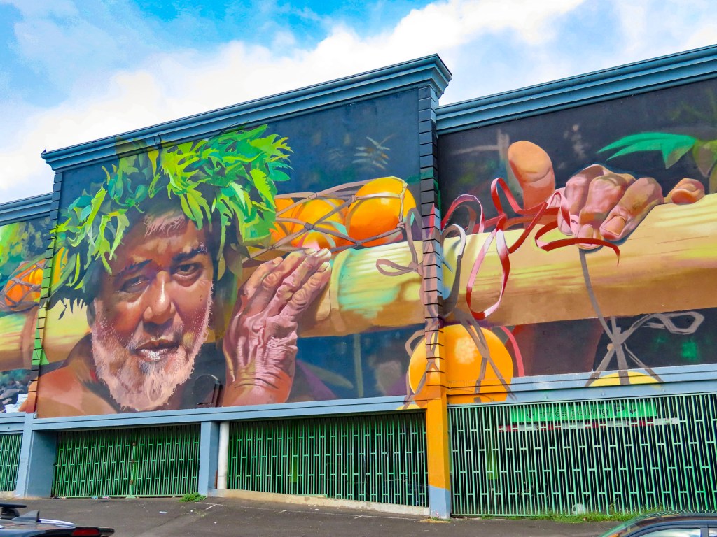 Surprisingly wonderful street murals grace the side of many otherwise dull city walls. Many of these beautiful pieces of art were sponsored by the Ono’u Festival, a street art event that has been held in Papeete since 2014. We used this street art map to help plot our walks around the different areas of the city. There are murals spread all across the city, but several of our favorites were located along the Rue Mgr Tepano Jaussen near the Cathédrale Notre-Dame de Papeete, a French colonial era church from 1875.