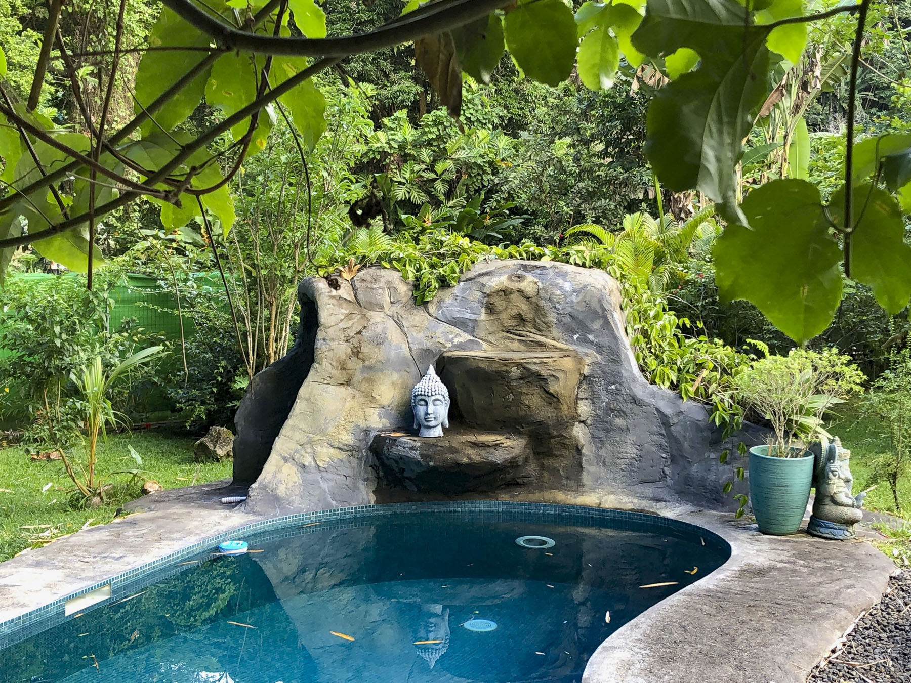 The intersections required caution as the traffic lights were also down, but once we followed Route 1 away from Papeete the prevalence of traffic circles was a blessing. From the air, the island of Tahiti is shaped like a flounder or beaver with a larger upper body and smaller tail. Similar to the way Tahiti Nui, the larger main island, connects to the smaller Tahiti Iti, at the narrow Taravao isthmus. It’s difficult to get lost on Tahiti considering the ring road, Route 1, is only 72 miles long and transverses a narrow coastal plain that encircles the island and separates the ocean from the abruptly steep mountainous interior. The road starts and ends in Papeete, with short spurs down the east and west coasts of Tahiti Iti. It’s a modest distance that we gave ourselves seven days to cover, split between exploration of the island and R&R. Our target at the end of the day, after multiple stops, Soul Rise in Nutae on Tahiti Iti, a rustic attached bungalow, with a private cabana and shared pool, for three nights.