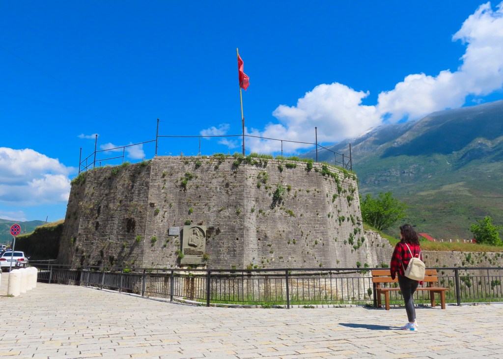 Gjirokaster Castle centered the landscape atop a long thin ridge that protruded from the lower slope of the mountain. At the castle’s apex the red and black flag of Albania blew full out in the wind, its colors vividly contrasting against the verdant hillside.