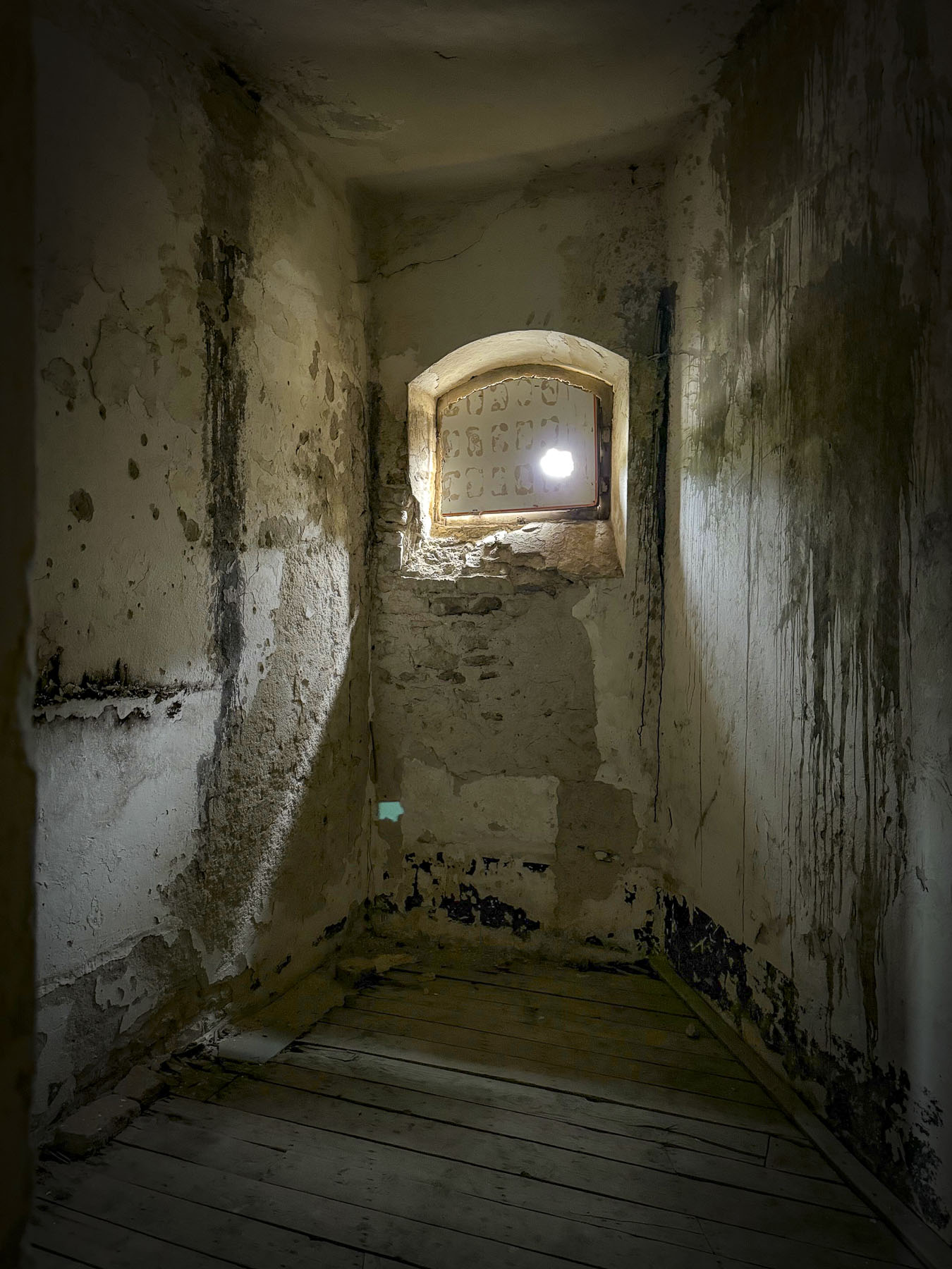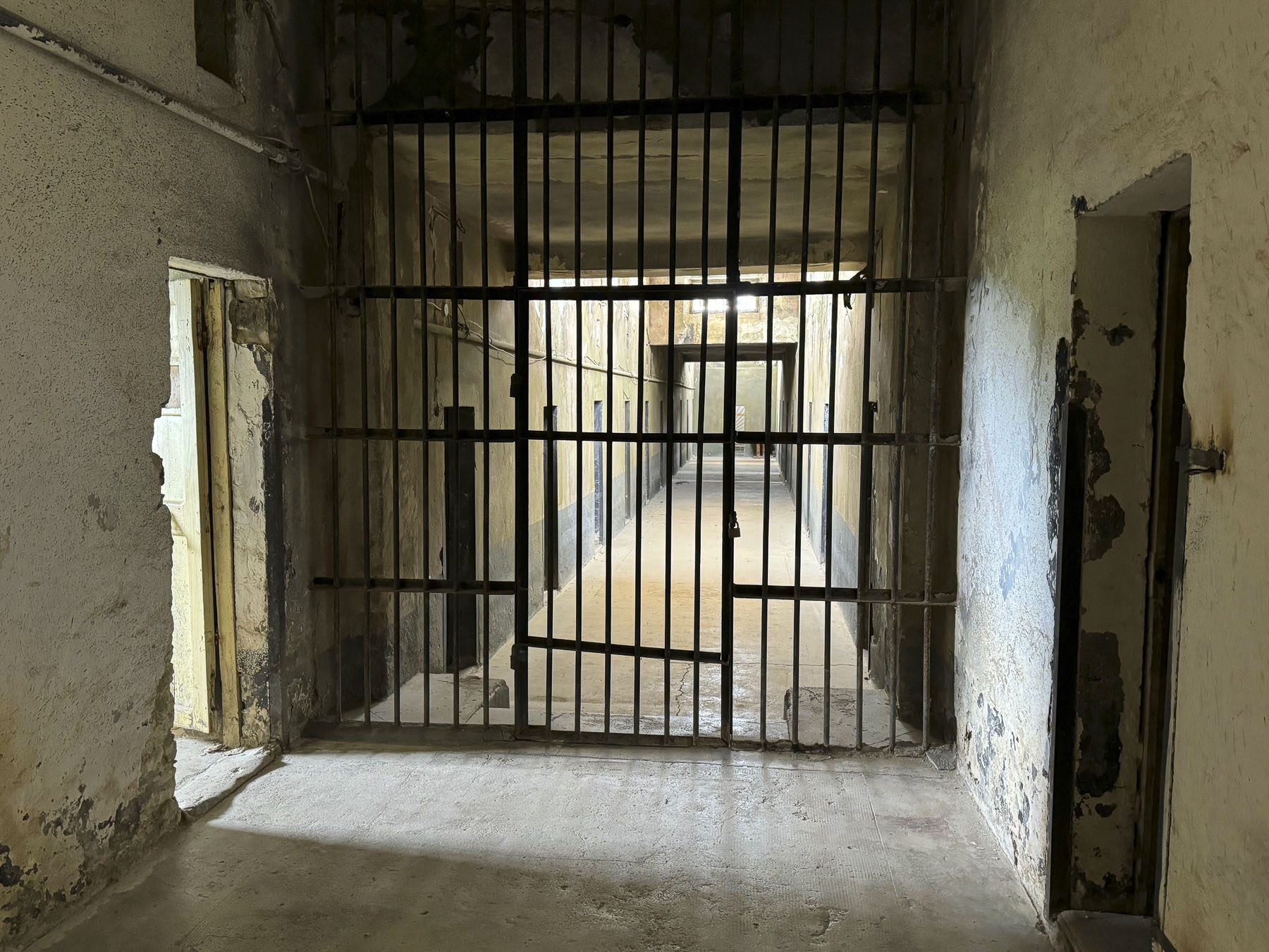 Not wanting to miss anything, we climbed stairs in the museum and followed signs to a small military museum, that had an extensive collection of ancient swords, rifles and pistols. But, on our return walk we noticed a small discreet sign that pointed to the prison.