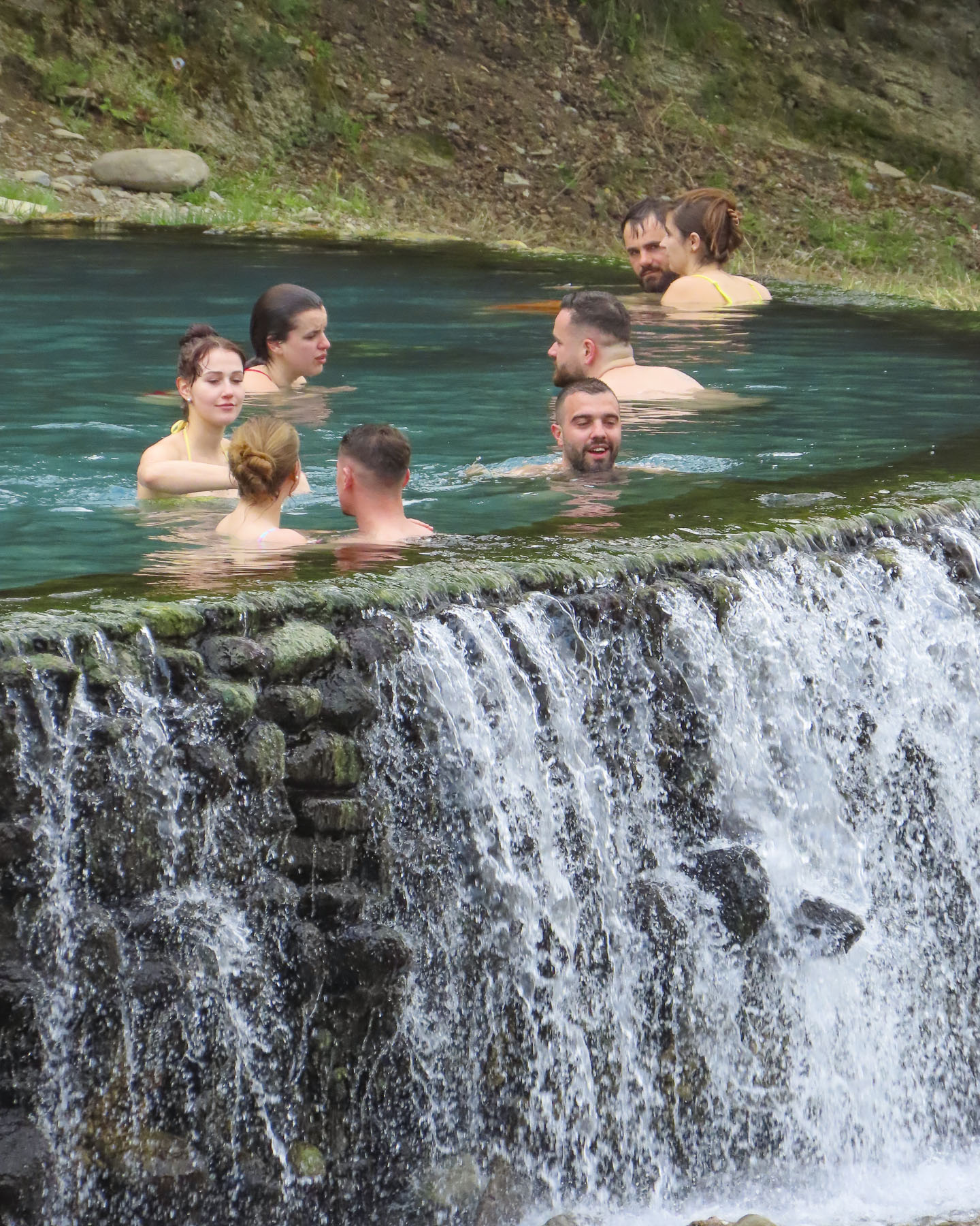 The old stone Ottoman bridges are truly graceful with their high arch design. But the real draw for folks to the bridge are the Llixhat e Bënjës, thermal hot springs at its base. Even in mid-April there was a sizeable crowd in various stages of undress enjoying the warm water.