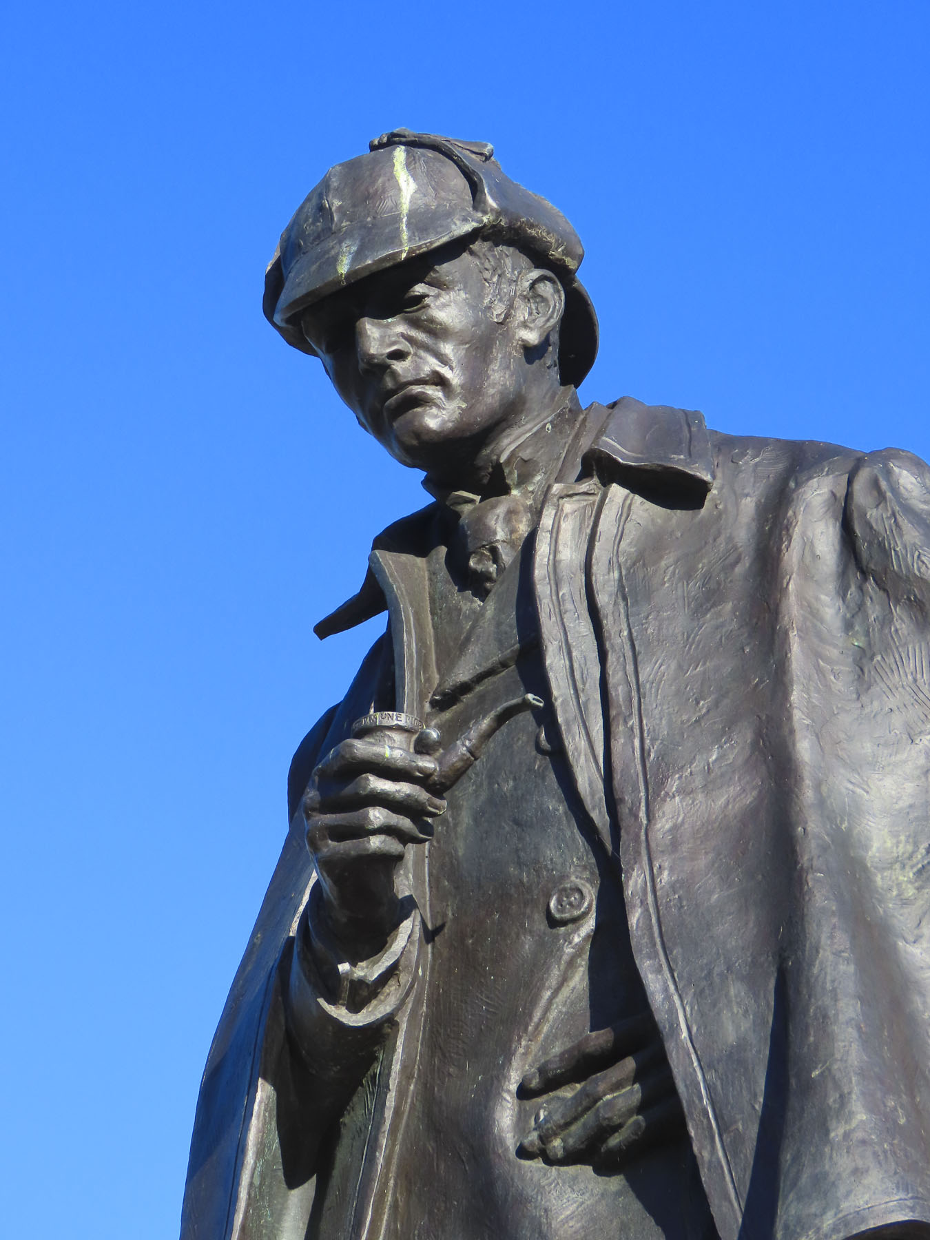 Atop the hill the style is most evident in the Dugald Stewart Monument, a memorial to the Scottish philosopher and mathematician; the old City Observatory; and the National Monument of Scotland, a Napoleonic Wars memorial built in remembrance of the soldiers and sailors who fought in those wars. Afterwards we walked down the opposite side of the hill towards the Omni building, a theater and entertainment center, across from the tram stop at Picardy Place. A tall statue of Scotland’s favorite detective, Sherlock Holmes, commands the plaza located a short distance away from the birthplace of the writer Sir Arthur Conan Doyle.
