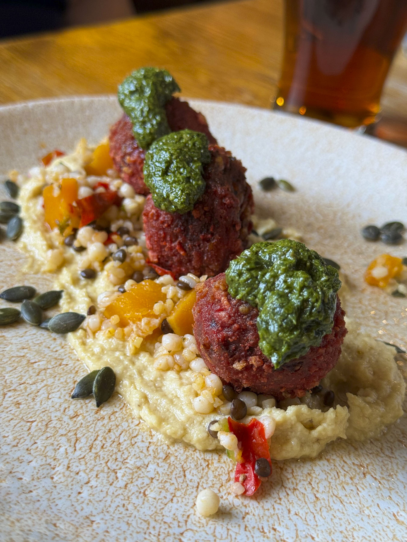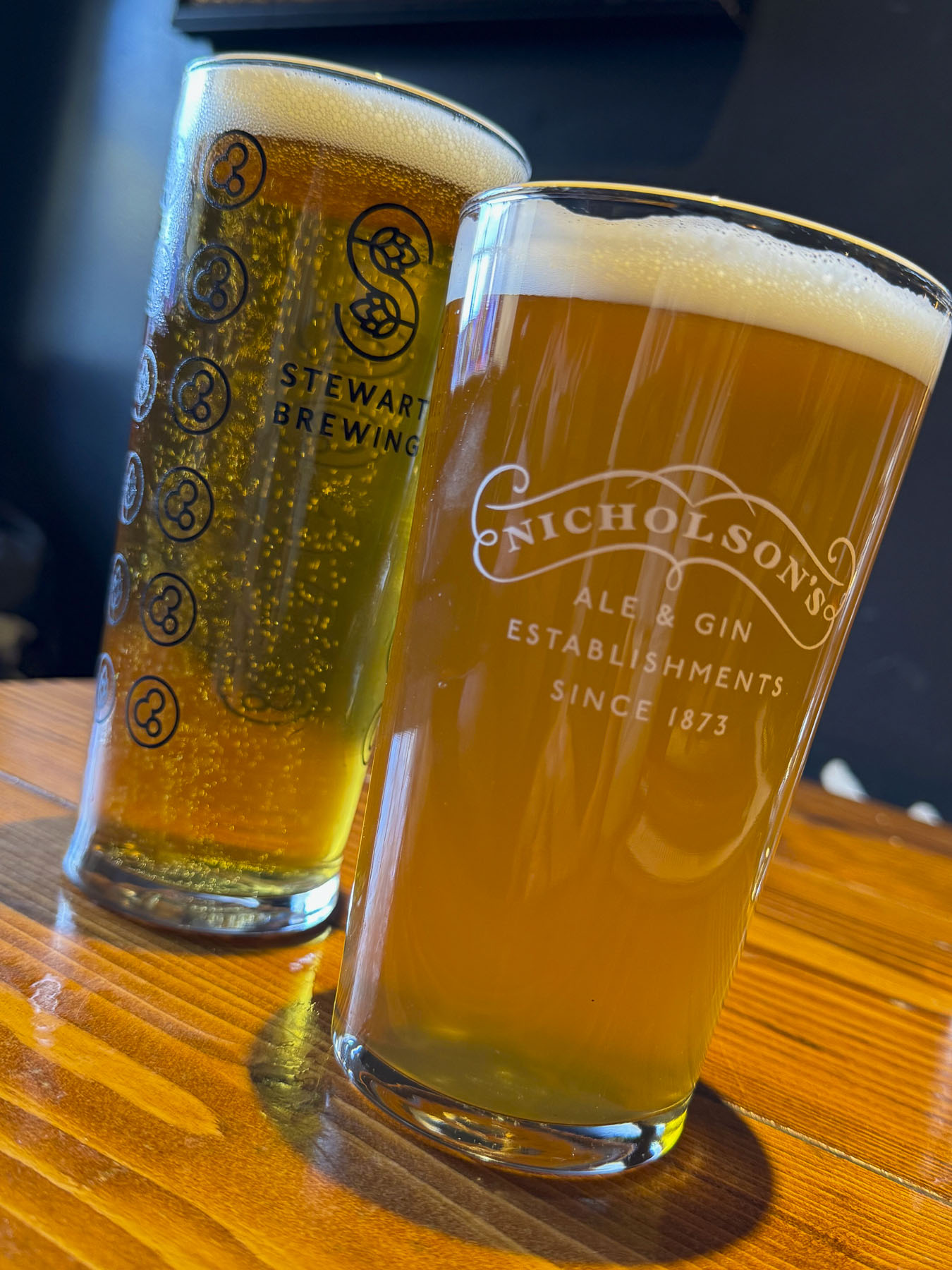 For dinner that evening we headed back into the new town and stopped at The Black Cat pub, which was recommended as having a great selection of whisky, friendly knowledgeable bartenders, and good fairly priced food. We tried a flight of three single malt coastal whiskies. Two were from islands off Scotland’s west coast; an Arran 10 year from the Isle of Arran, and a Ledaig 10 from the Isle of Mull. The third was a Glenglassaugh 12 year distilled near Sandend Bay in northern Scotland. The young barkeep was also a well versed whisky sommelier, and guided us through the subtle influences the Atlantic and North Sea air have on the aging process. Poetically using a cask full of adjectives to describe the Nose – floral seaside aromas, with gentle smokey palate – a malty creaminess, and finish – sublimely spicy, a kick of cloves, or an exquisite lingering saltiness, to variously describe the warm amber liquors we were enjoying. All were very nice to sip slowly, though the Ledaig 10 was a little too peaty for our taste, and we likened it to inhaling too deeply with your first cigar – it took some getting used to.