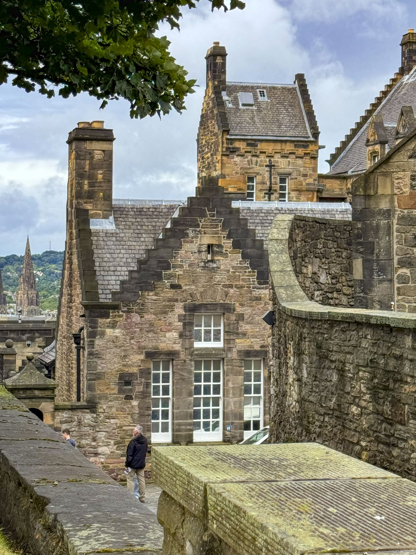 For the next morning Donna secured us tickets for the opening time at Edinburgh Castle, and we arrived to join the small queue already forming. The top of this massive rock has been a safe haven since the Iron Age when folks first sought refuge there. It was the seat of the Scottish crown for several centuries after Malcolm III Canmore, the first King of Scotland, set foot upon the Castle Rock in the 11th century, though the principal royal residence, since its construction in the 16th century has been Holyrood Palace.
