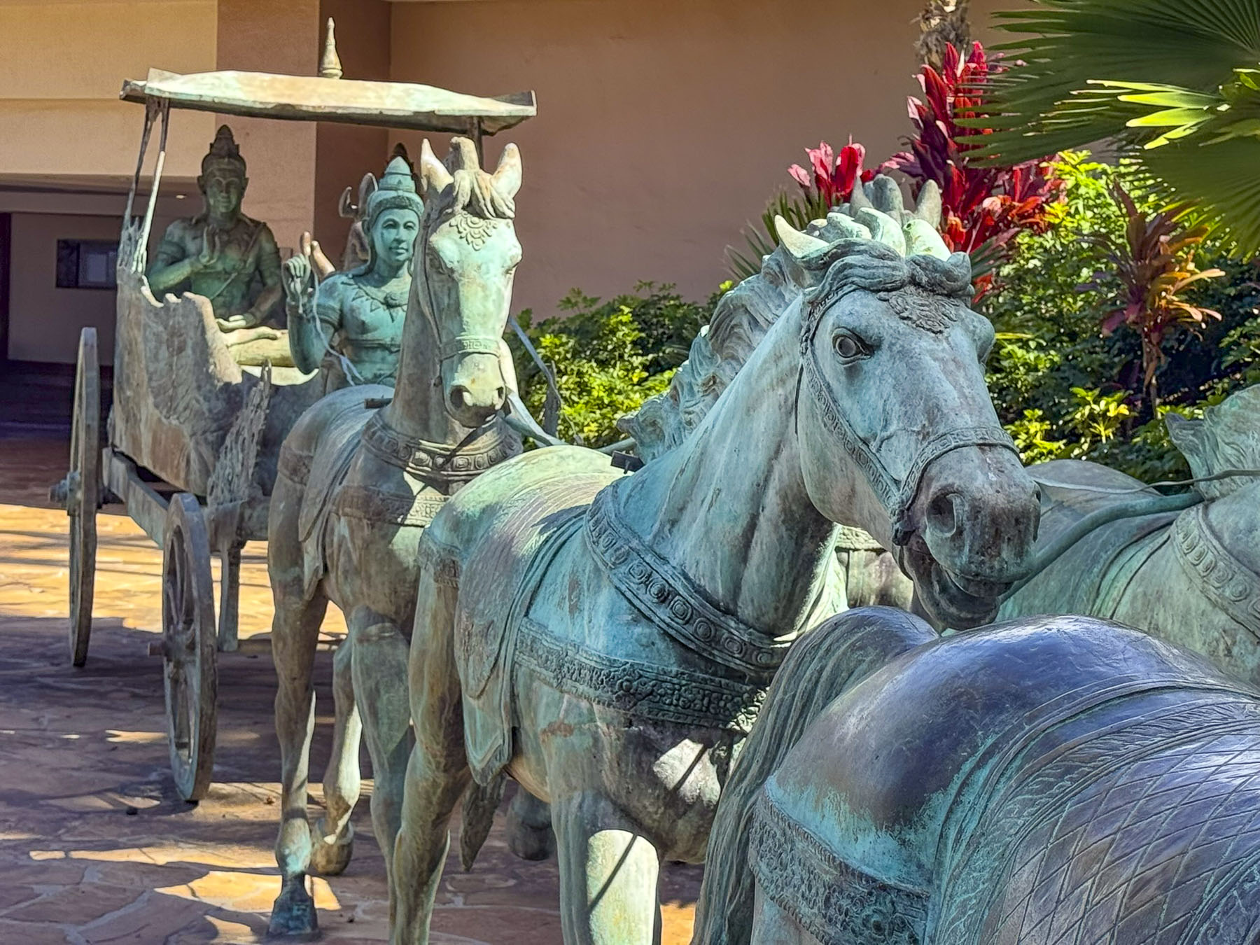 It was less than a mile walk from our room through the beautifully manicured landscaping which coursed through the jagged lava fields that surrounded the Hilton Waikoloa Village, a sprawling complex with a tramway and footpaths connecting several towered hotels and pools along the seafront and the site’s lagoon.
