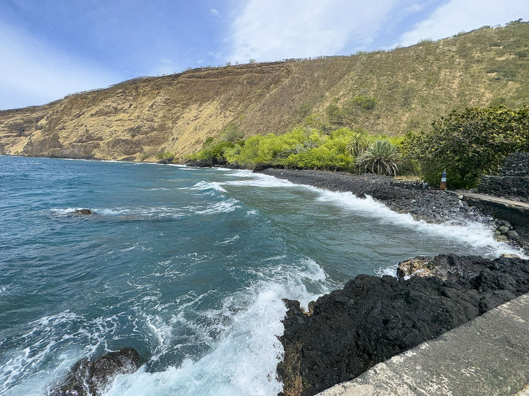 Our ambitious plan for the day was to follow the Hawaiʻi Belt Road, Rt11, to the Hikiau Heiau temple on the opposite side of Kealakekua Bay from which Captain Cook landed in 1779, then hit a number of other interesting spots as we continued south to Ka Lae, or South Point as it is also known, before swinging around to the eastern side of the island, and ending our day on the volcanic black sand of Punaluʻu Beach.