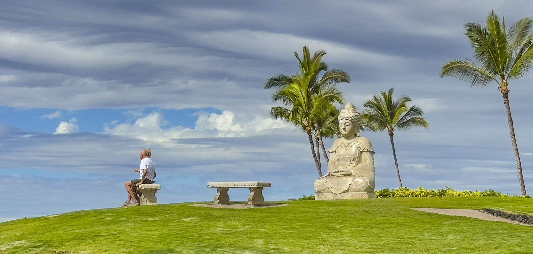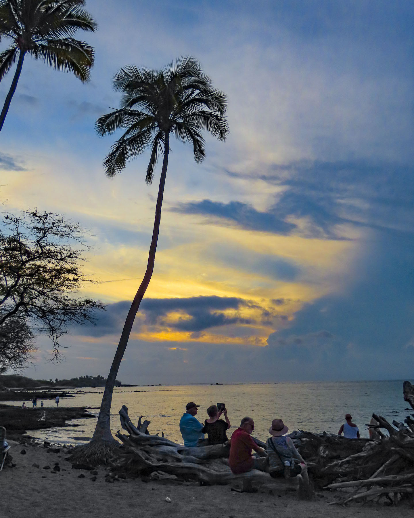 When we arrived at the Budget Car Rental office the queue was already out the door, and we watched our first Hawaiian sunset from the waiting line as the sun’s dying rays silhouetted the palm trees. This was not the romantic drinks-on-the-beach sunset we had envisioned for our first night on the island. The problem was a severely understaffed rental counter which gave priority to members of the company’s Fastbreak Program. We finally figured this out after waiting two hours, with more than one hundred other folks in a queue that now wrapped around the building. Donna realized we could download their app and take advantage of the expedited checkout program, and signed us up on the spot. As we switched lines, we shared our tip with folks around us, and we were headed out to our car within minutes. Donna acknowledges a twinge of guilt as we sashayed past all the other poor folks still stuck in that dreadful line. We’ve used Budget Car Rental flawlessly many times, but this was a horrendous experience. Fortunately, our lodging for the week at a Hilton property in Waikoloa was only a 30-minute drive north on Rt19.