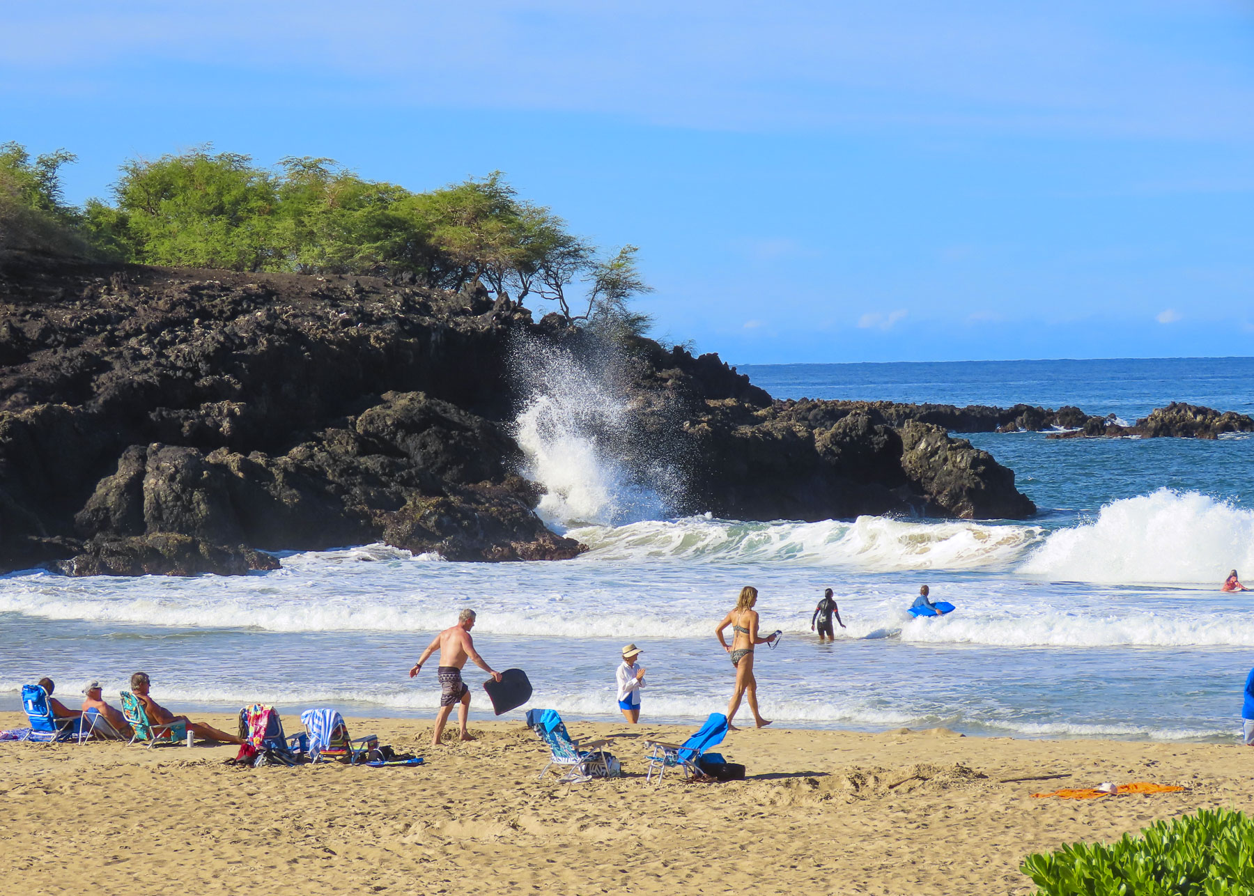 Dinner and watching the sunset from the Lava Lava Beach Club on ʻAnaehoʻomalu Bay is a pleasant nightly ritual for many who visit the area.