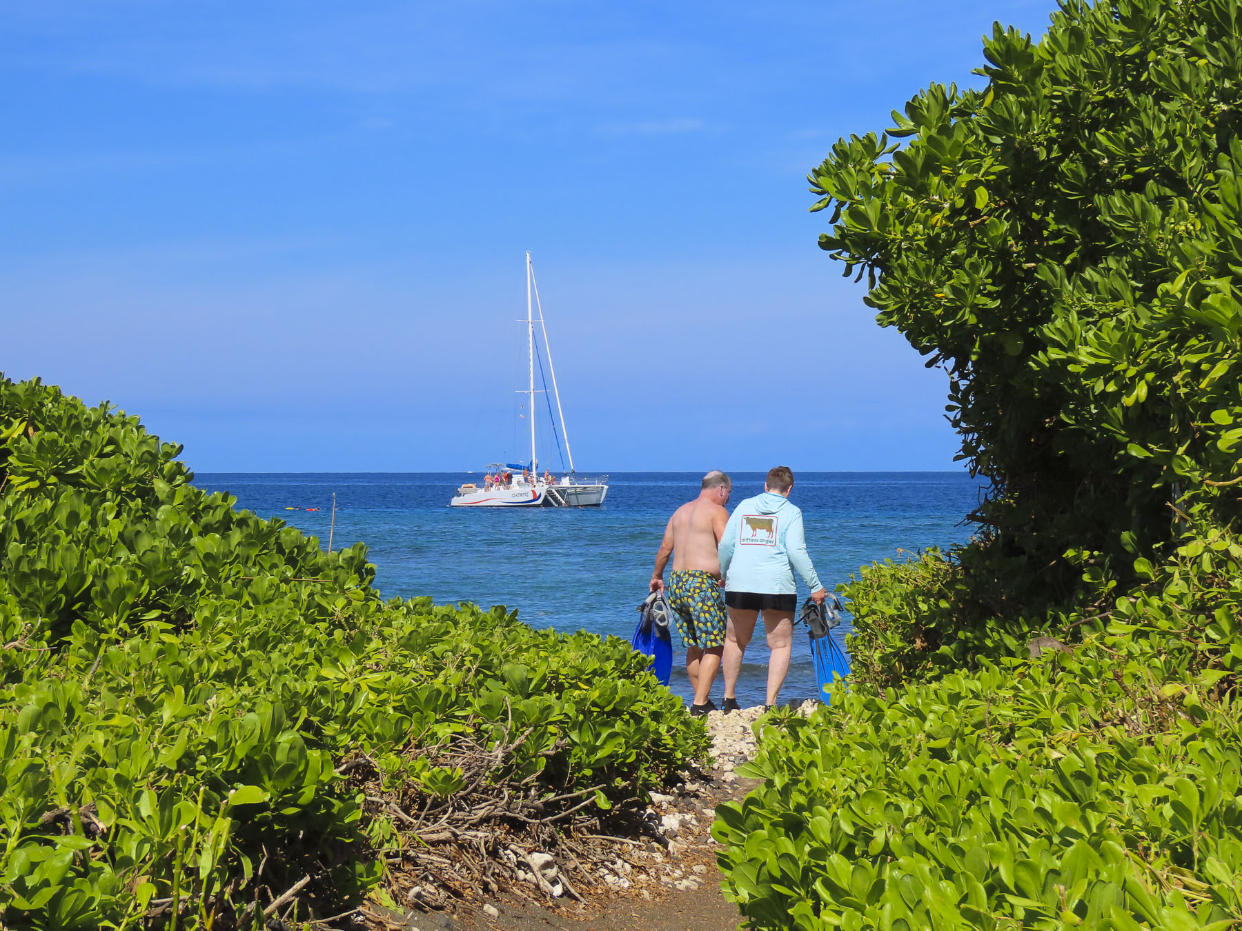 The symbols were quite interesting, but it was obvious that the carvings were reproductions of ones that the trail led to. We followed what started out as a well-worn trail through a primeval forest full of twisted trees, until the trail seemed to vanish. It was a hot day, and we were concerned about getting lost, so we backtracked and turned our attention to discovering some of the smaller beaches near the resort.