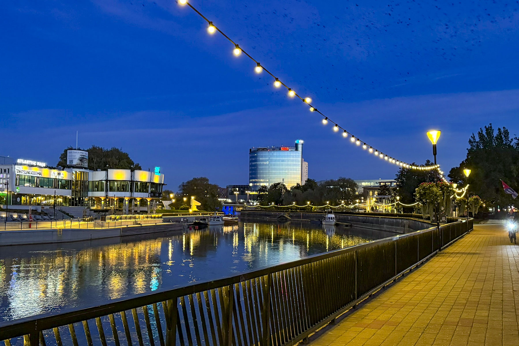 Beyond the reception desk, the dancing patterns of light off the ripples of the hotel’s dramatically lit pool looked enticing. But after a long day of flying we needed a good night’s sleep.