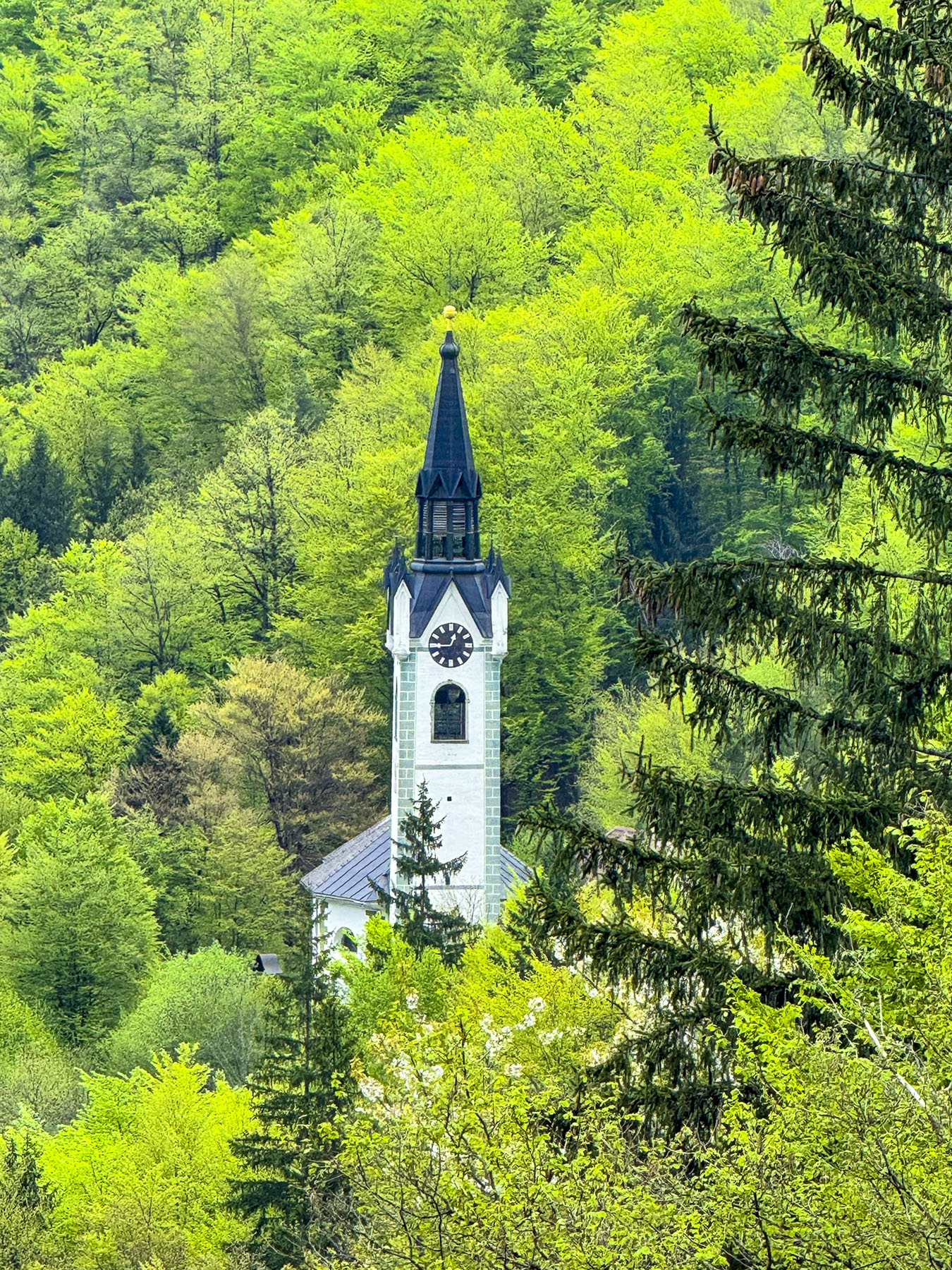 Driving across the countryside, every hilltop we saw seemed to be crowned with a small church, which is not surprising considering Slovenia has nearly 2,900 of them. Twenty-four-hundred of them are still actively used, but many of the older churches in rural areas have congregations of fewer than fifty, some even smaller than twenty. With fewer priests nowadays Sunday services are rotated between communities. Our backroads route from Selška Sora to Lake Bled through the area’s foothills was designed to see several of these old chapels in the countryside.