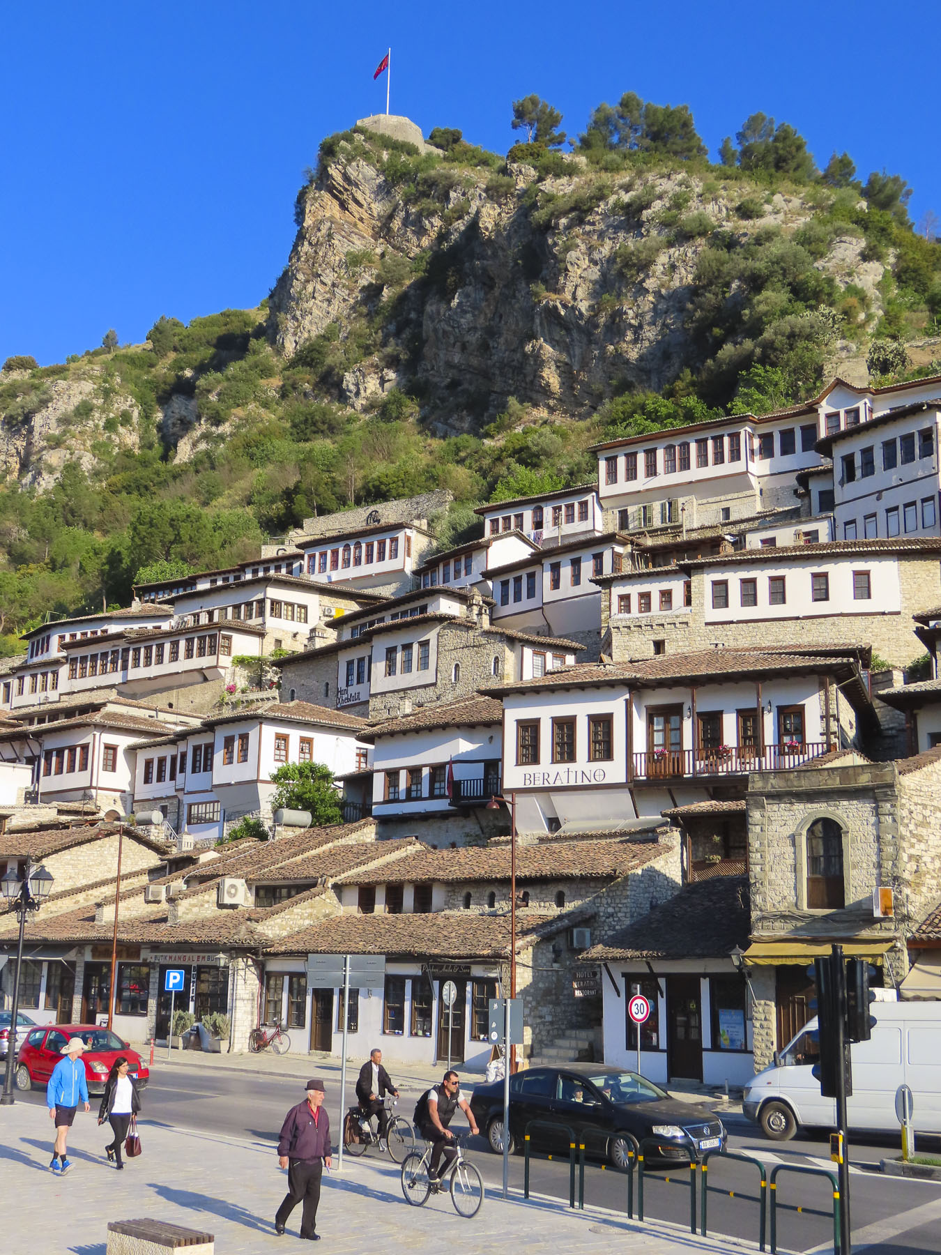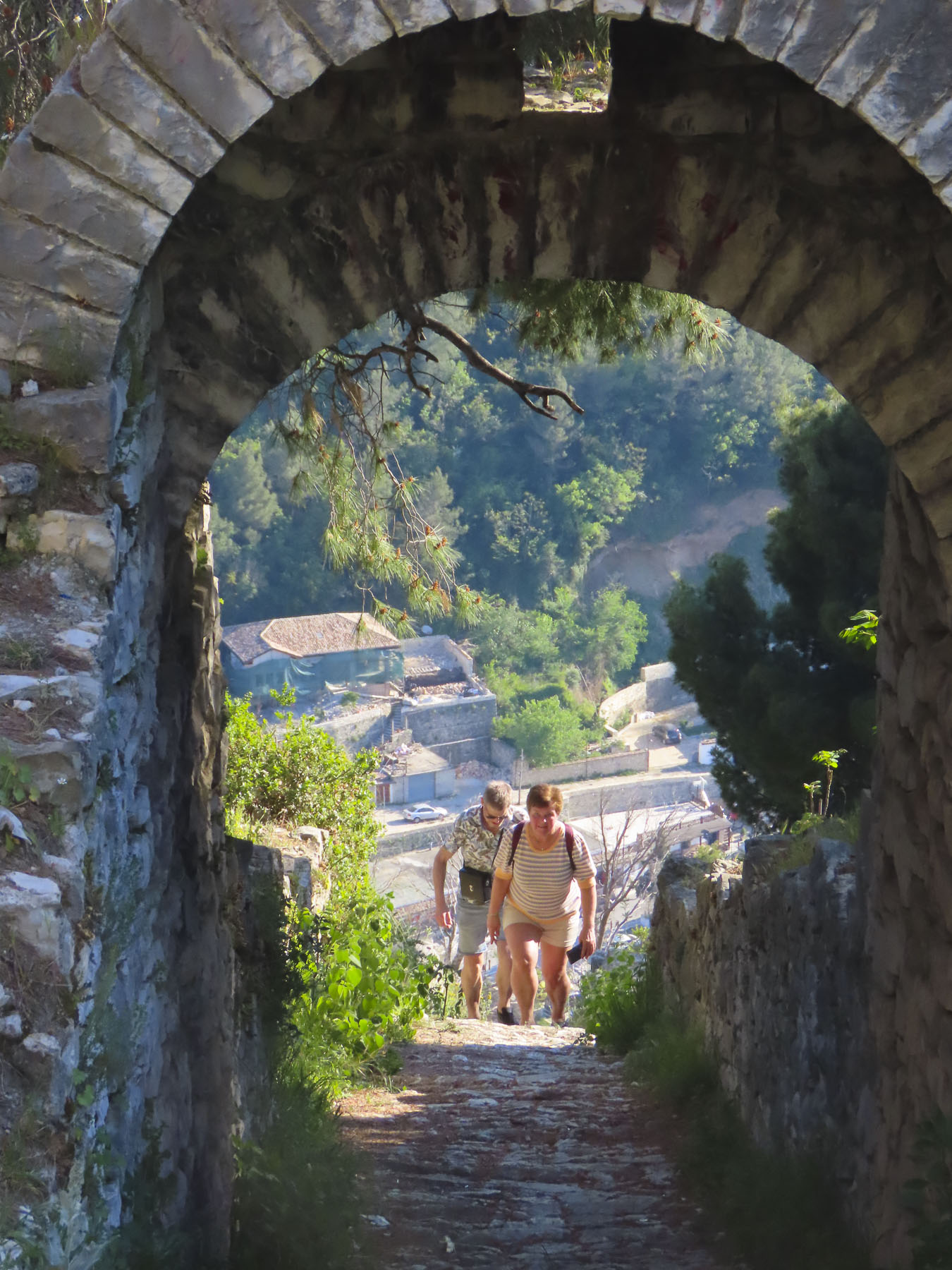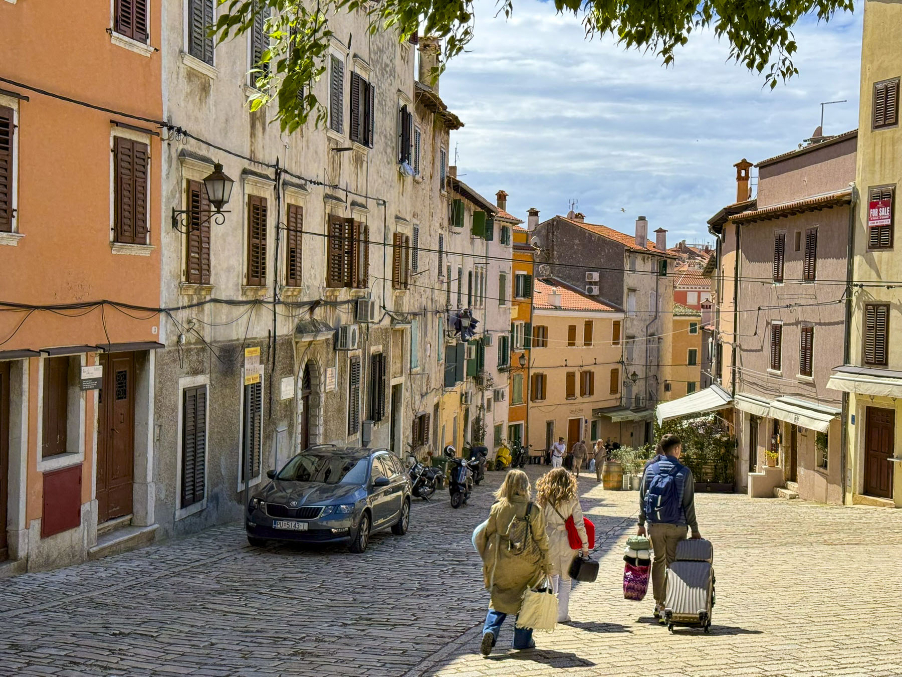 The rattling of suitcases pulled across ancient cobblestones by vacationers heading to their hotels accompanied us downhill. Surely an annoying sound, and we wondered if it was any better or worse than the hoofs of donkeys or horses, and wagon wheels clattering across the stones centuries ago.