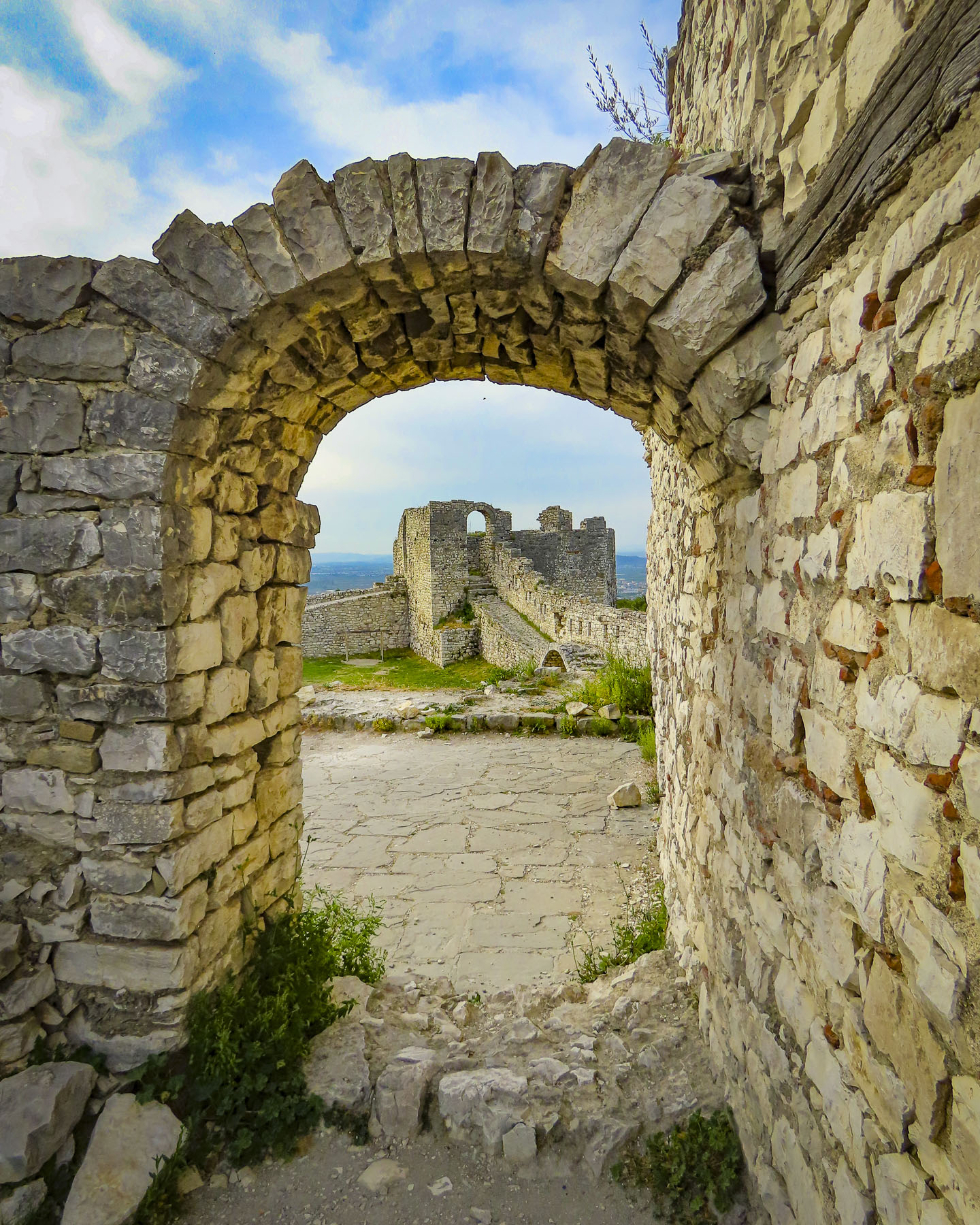 We had hoped to take our own pictures of the town from the sea, but the weather we felt was too cloudy to justify the expense of the boat trip. We contented ourselves instead with wandering along the harbor front before entering the old town through Balbi’s Arch, an old Venetian gate, to the once walled citadel, before following the twisting stone lanes up to St. Euphemia’s Church.