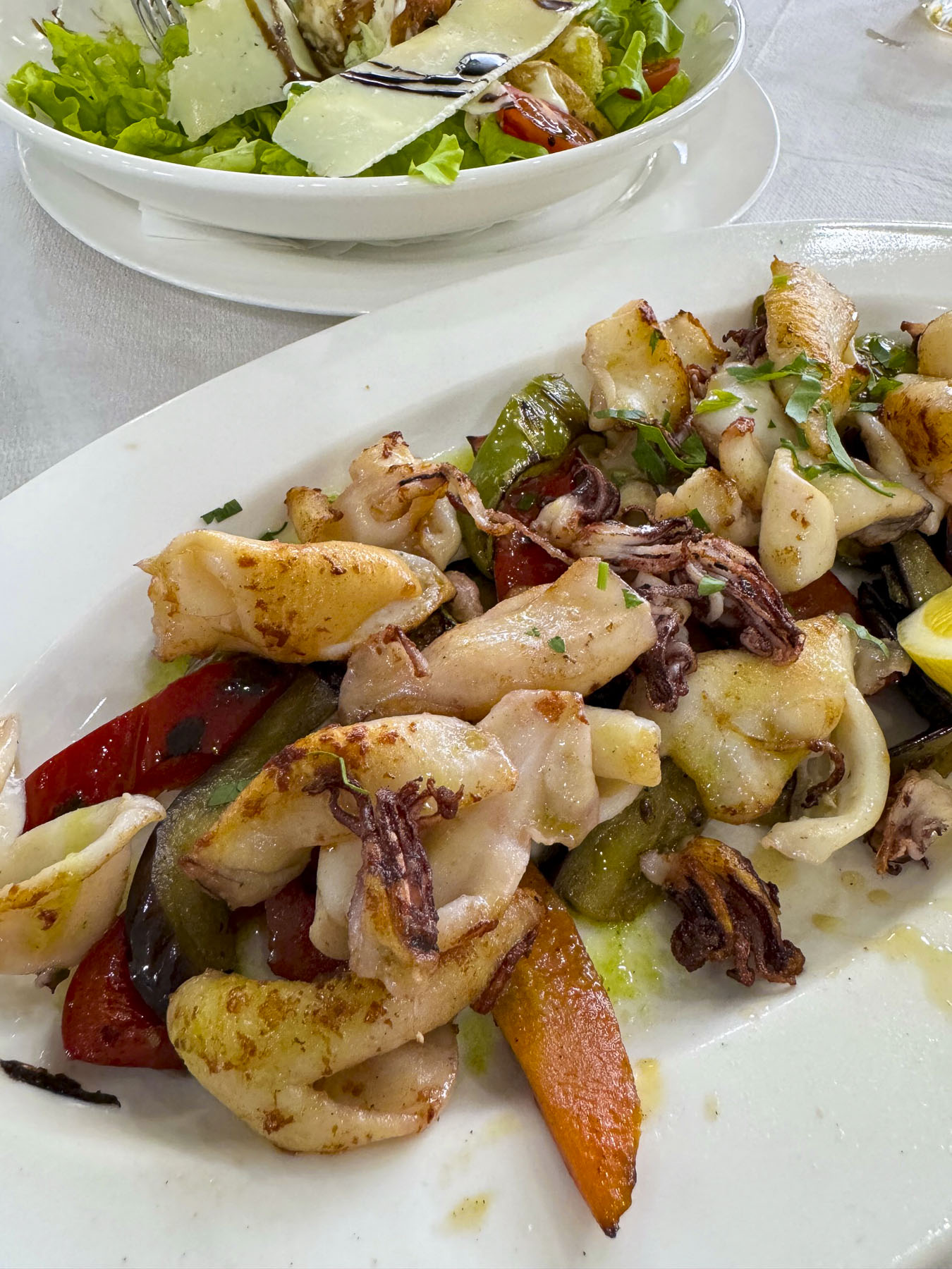 This lane from the church passed several restaurants, but the wonderful aroma originating from Fish House Rovinj encouraged us to stop for lunch. It’s a tiny no frills seafood bar with limited seating on bar stools inside and along the wall outside. All the fish is locally sourced and purchased fresh every morning at the docks. We tried fried calamari, grilled shrimps and fish tacos. Every dish was delicious. Their staff were very nice, and the menu was extremely budget friendly considering Rovinj is a top tourist destination. The place should definitely be considered a destination spot when visiting Rovinj.