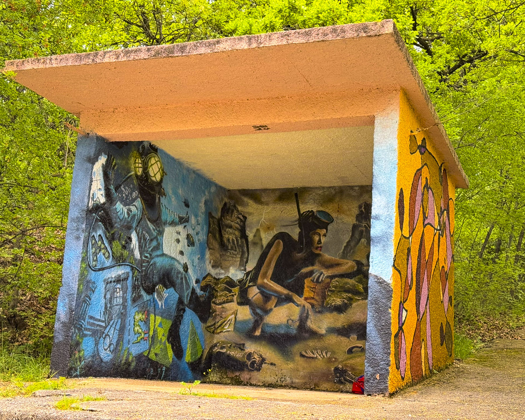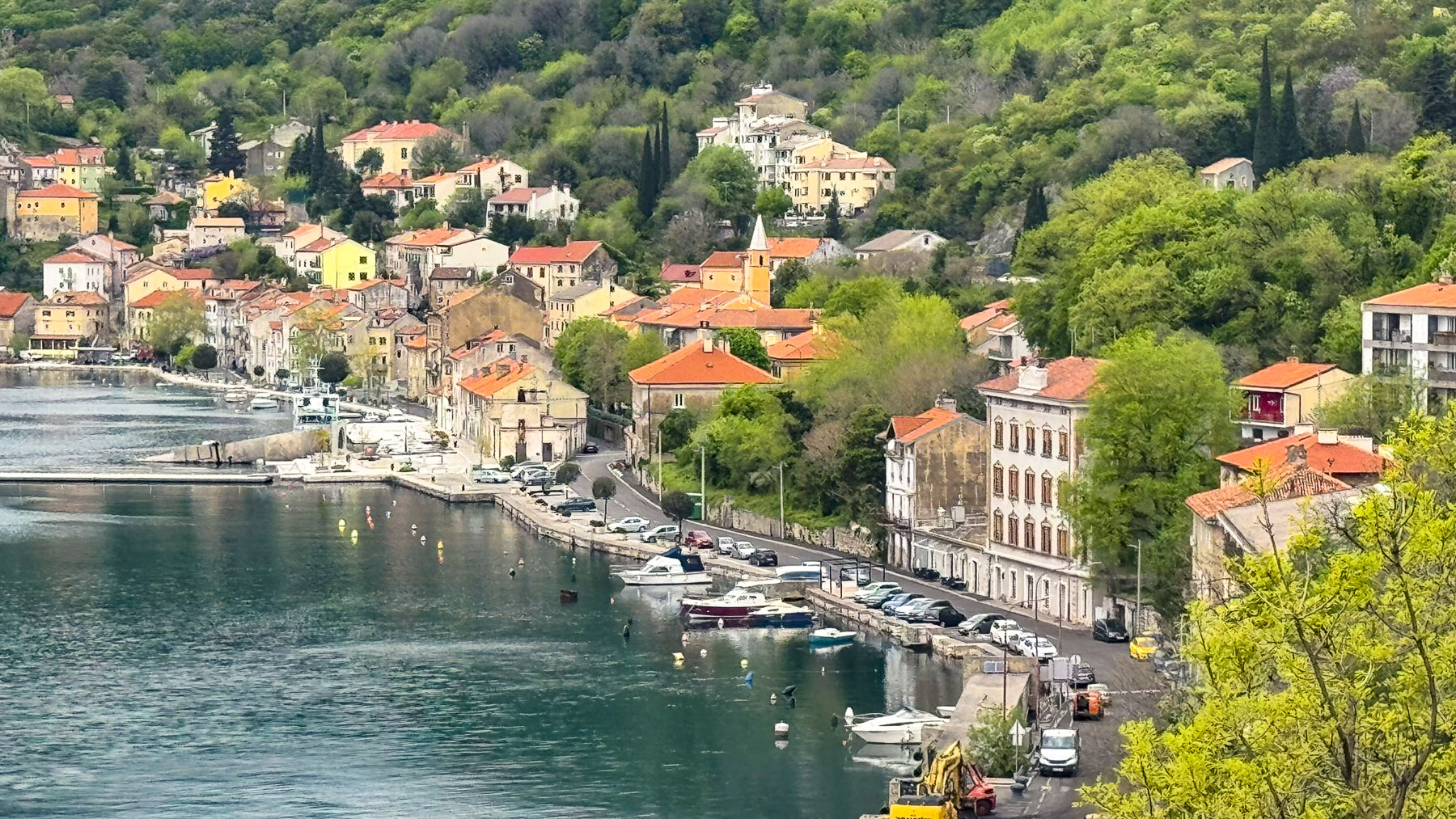 We would enjoy time to explore in depth not just the small coastal villages like Bakar, where just beyond the village some of the bus stops along the road are covered with murals that reflected the areas maritime heritage, and Mošćenička Draga, beautifully set on a small cove, but also some of the less mentioned larger coastal cities like Jadrolinija and Opatija, which were fashionable Habsburg-era resorts in the 19th century and still retain their fine architecture. We regretted that we only had time to drive through these areas.
