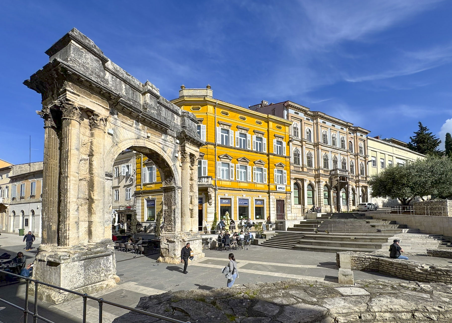 Our route took us through the Arch of the Sergii (29 BC), a Roman triumphal arch, and main gate through Pula’s defensive wall, which once stood around the city. The ramparts were dismantled in the early 19th century, when Pula was an important naval base for the Austrian Empire, and the prosperous city needed room for expansion.
