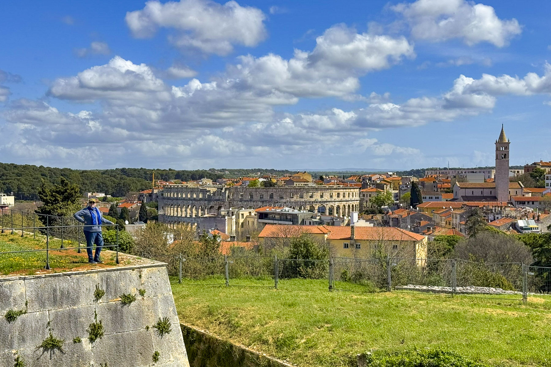 While our flat was adequate for our 3-night stay, we wouldn’t describe it as luxurious, but its location on a steep lane in the center of the historic district was excellent, being only a short walk away from everything in Pula. Wanting to take advantage of the sunny afternoon that appeared as we entered the city, we were soon out and about, walking past colorful homes and flowering wisteria along the road to the Citadel of Pula or Kaštel, as it is locally known.