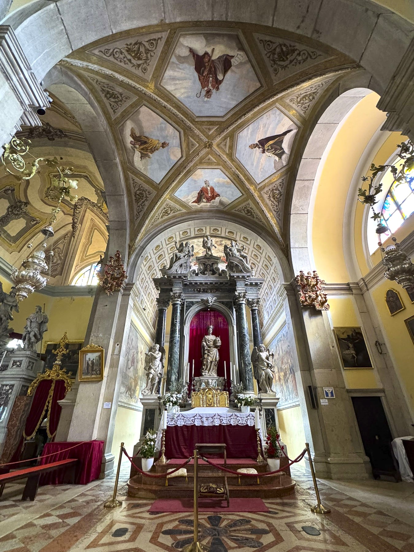 But part of the reason for the new church was to honor the miracle of St. Euphemia, a 4th century martyr, executed by the Eastern Roman Empire in Constantinople, before the empire adopted Christianity. The legend of St. Euphemia’s sarcophagus arrival to Rovinji begins during the 700s Iconoclast heresy, when Emperor Constantine V, ordered her relics thrown into the sea. One hundred years later “fishers early one morning discovered a marble sarcophagus which had floated ashore like a stone ship. The townsfolk enlisted their strongest men, horses and oxen attempted to pull the tomb off the beach, but to no avail.