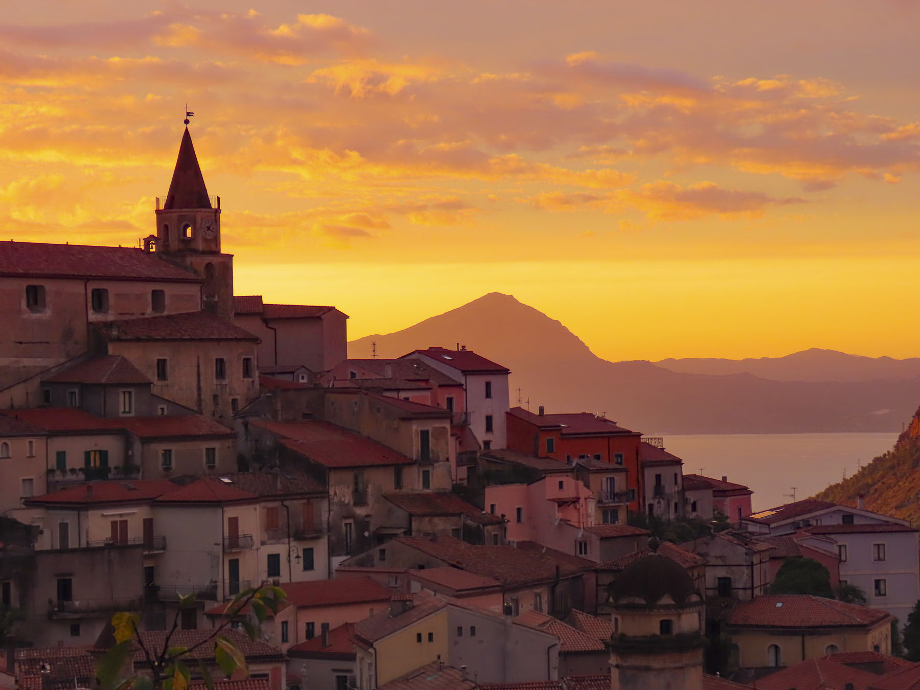 The broad expanse of Piazza IX Aprile, adjacent to the Porta di Mezzo clock tower and the elegant Baroque Church of San Giuseppe draws a large crowd at sunset to admire the view, and is the perfect spot to enjoy a classic Aperol spritz.