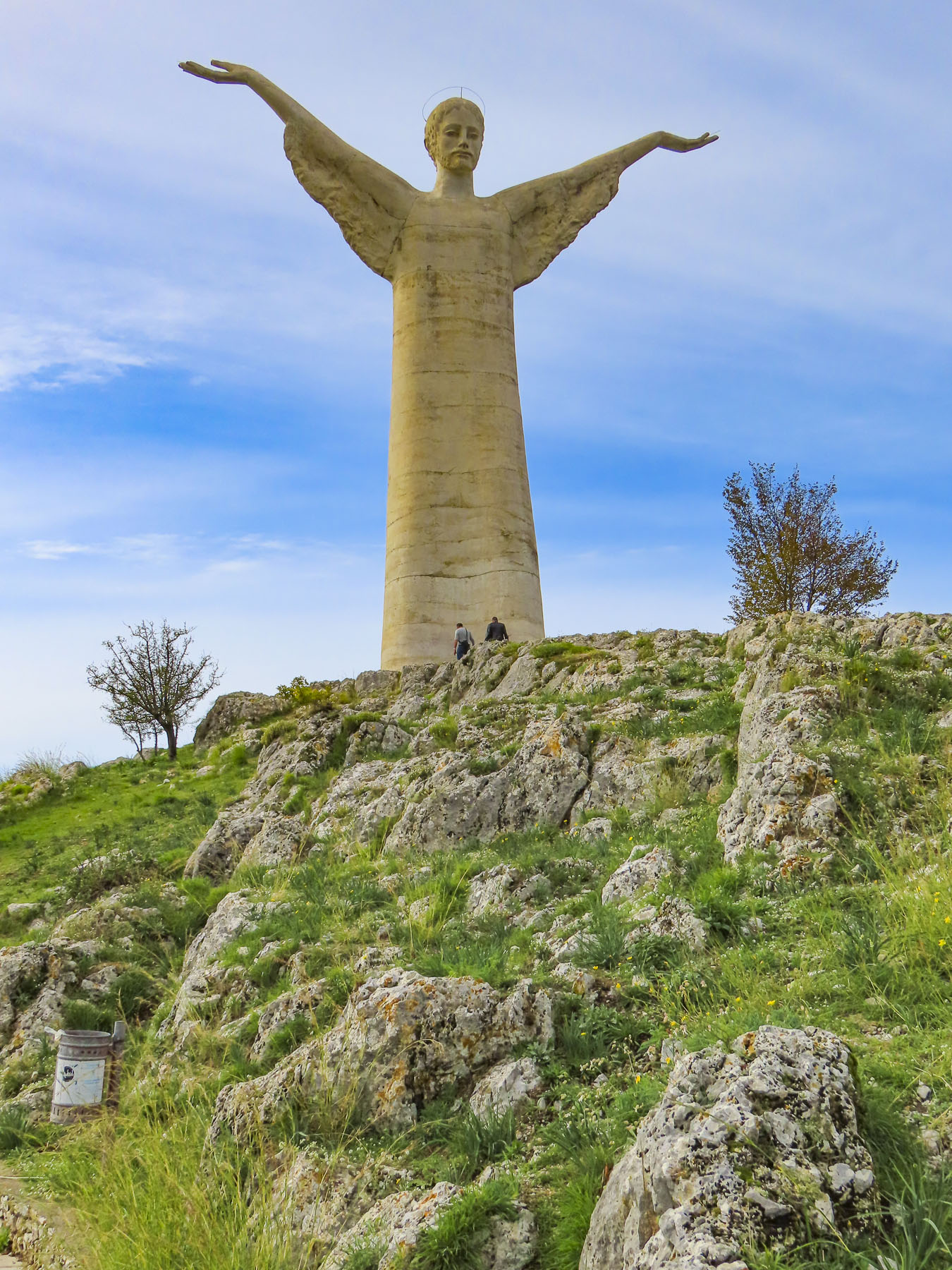 In 1963, Italian sculptor Bruno Innocenti was commissioned to create a statue of Christ to crown the summit. His youthful portrayal of Jesus without a beard, made from poured concrete mixed with crushed marble from the famous quarries in Carrara, faces East, inland toward the rugged mountains and the church that holds San Biagio’s relics. Standing 70ft high with an arm span 62ft wide, it is the fifth tallest statue of Christ in the world.