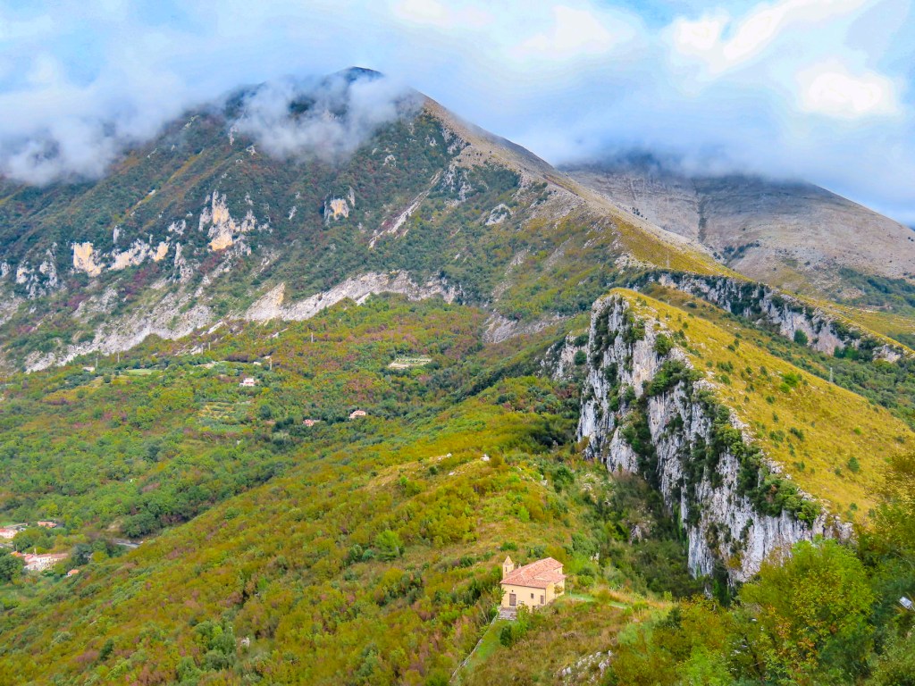 The views up and down the rugged coastline and inland were spectacular. Maratea is also known as “the Holy City of Southern Italy,” so named because the small town has 44 churches. We were excited when we spotted several tiny bell towers in the distant village from the overlook.