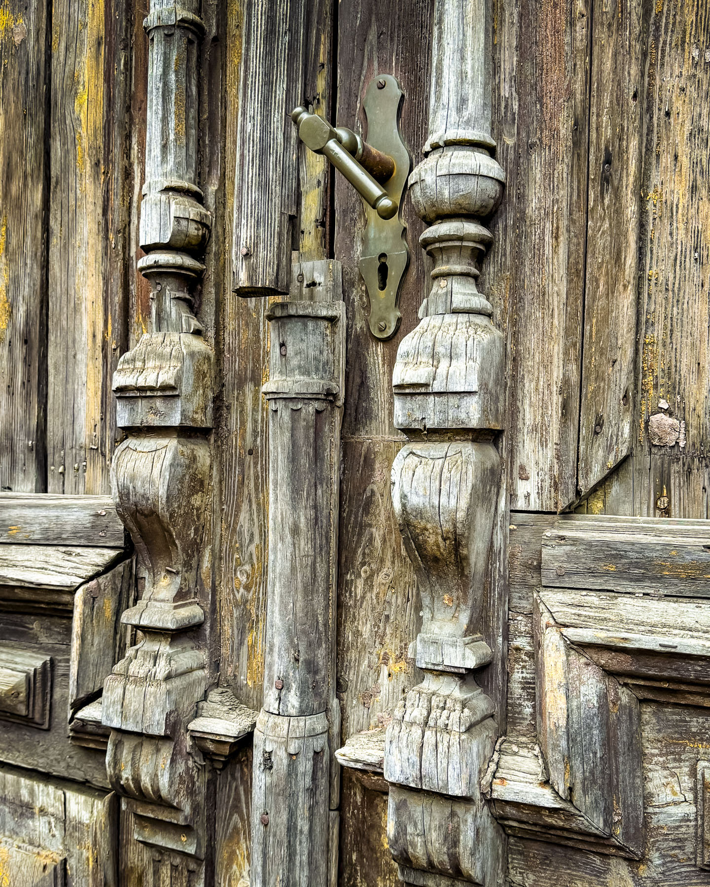 The graveyard surrounding the chapel was full of interesting old headstones. Some were carved from logs and were well weathered and split from age and the elements, while the more recent graves were marked with stone or marble memorials with the deceased’s portrait etched into the surface. There was a caretaker working on the grounds who wouldn’t acknowledge our presence, so we contented ourselves with peering through the dusty windows into the sanctuary the best we could.