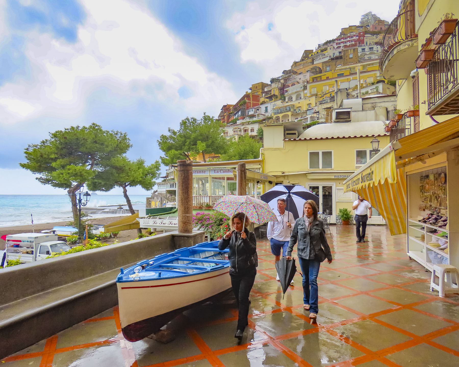 To our delight, our aperitives were accompanied by small sandwiches with chips and olives. We had every intention of heading back to the restaurant, but our waiter was engaging, and the Aperol spritzes were very good. We spent the time watching folks fight the wind with their umbrellas through the bar’s rain-pelted window. The specular highlights from the streetlights added magic to the scene. Occasionally some groups popped inside seeking a warm reprieve from the downpour outside, shook out their umbrellas and found a seat. Recapping our adventures, tentatively planning the next six months, and talking about Christmas with our kids back in the states, the evening flew by until the waiter said they were closing. Umbrellas up! We headed home.