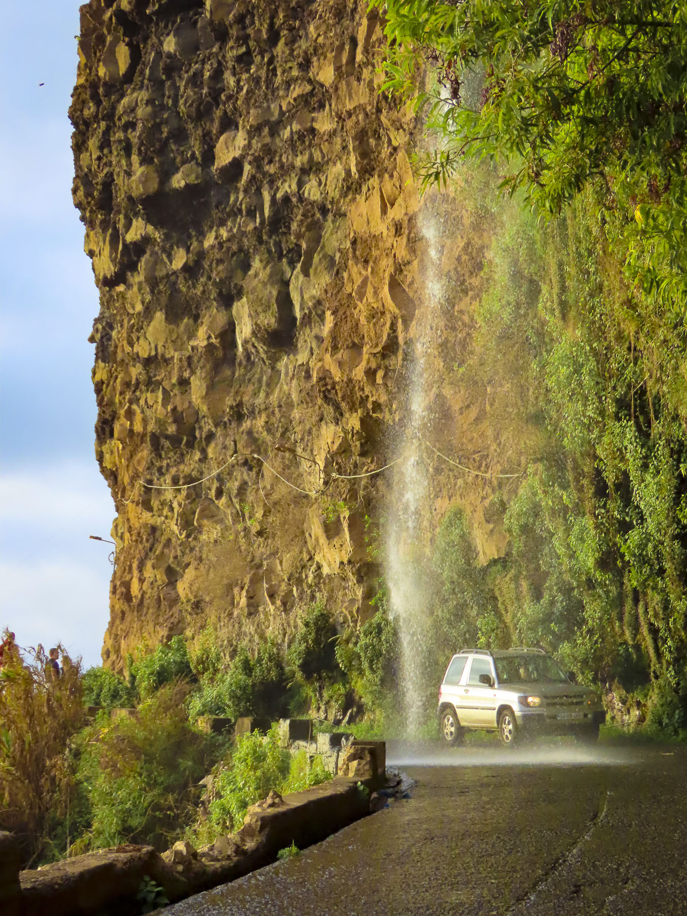“Roll up your window.” “Wait, you’re not going to…” Yee haw! I yelled and we laughed while a thunderous cascade of water splashed off the roof of our car as we drove under the Cascade of Angels waterfall.