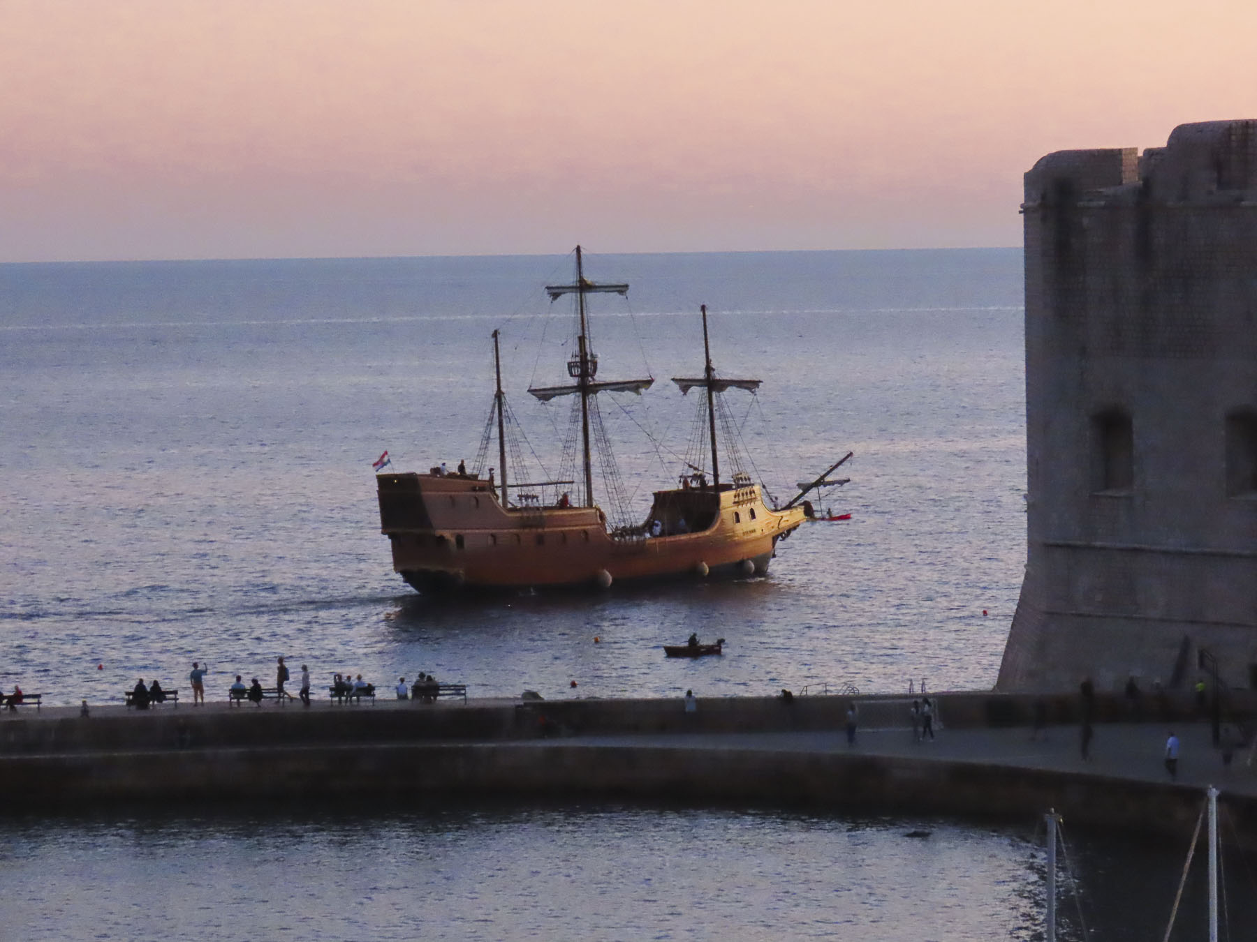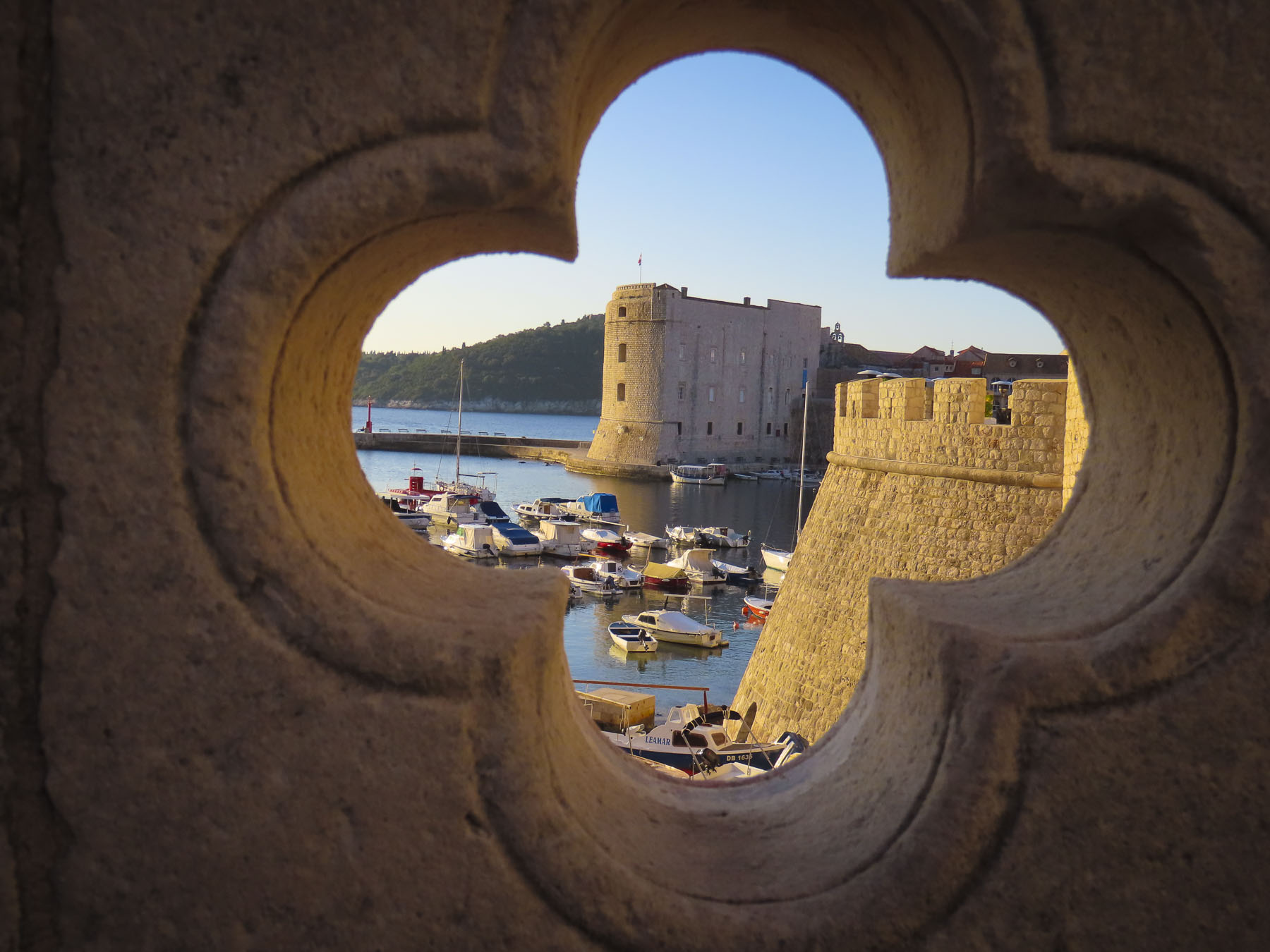 Fortunately, mid-October was considered off-season and we were able to find a wonderful apartment, Old Town Sunrise Apartments just steps away from the Babic’ Bakery and the 14th century Vrata od Ploča or East Gate with its ancient drawbridge. The agony of lugging our bags up three flights of stairs was rewarded with gorgeous views from our roof windows, since the studio apartment was directly across the harbor from Fort St. Ivana.