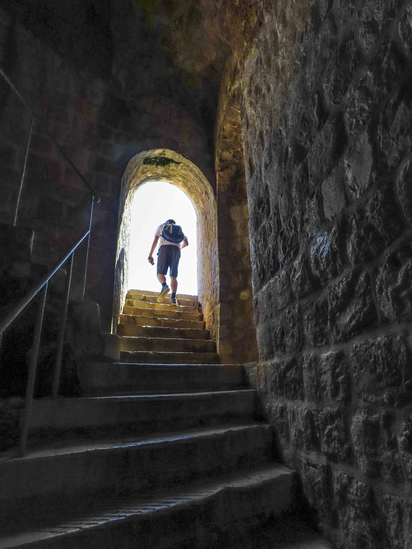 Across from Dubrovnik’s West Gate and harbor, the 11th century Fort Lovrijenac, the “Gibraltar of the Adriatic,” sits atop a towering rock monolith 121 feet above the sea. Climbing to the top of the citadel along well-worn footpaths and stairs satisfied us with great views back across the harbor of walled Dubrovnik and kayakers paddling along in the cove below.