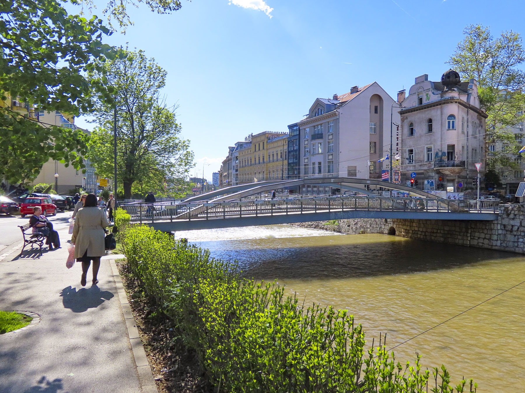 The walk along the Promenade de la Rabine, “the alley planted with trees,” was one of these walks that started near the Place Gambetta and followed the long sliver of La Marla, down its right bank a half-mile, towards the newer commercial port and the Gulf of Morbihan. The idea for this tranquil public space first arose in 1687, and over the following centuries it has been widened and extended several times. Halfway back on the return route there is a pontoon footbridge across the marina to the more cosmopolitan left bank.