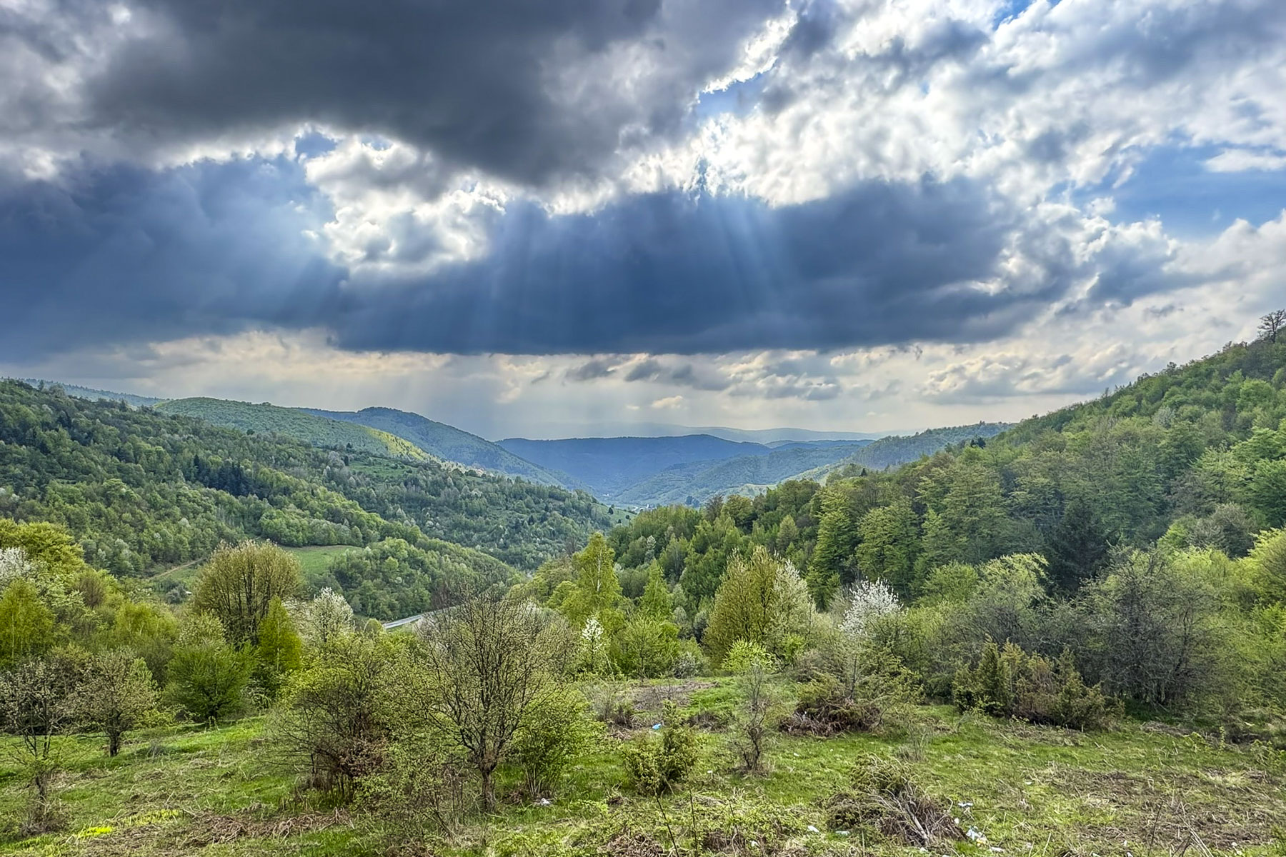 The sun’s early morning rays cast a soft glow across the gently rolling countryside, silhouetting farm buildings and highlighting here and there pockets of mist still clinging to warm earth, and stubble in freshly plowed fields waiting to be seeded with their winter over crop.